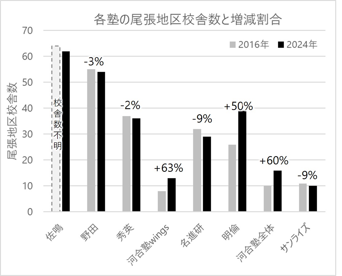 (佐鳴の2016年校舎数は、どう頑張っても出てこなかったので空欄になっています…)