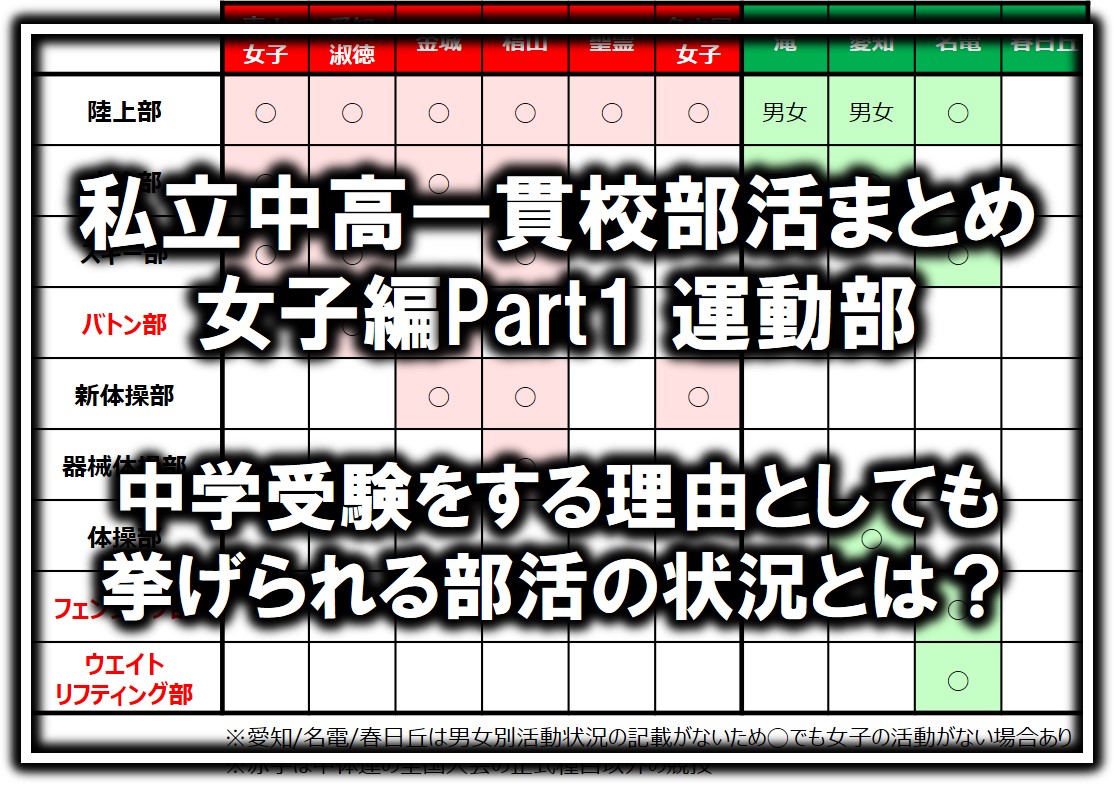 今回は女子編Part1ということで、女子校+共学校の運動部についてまとめます。