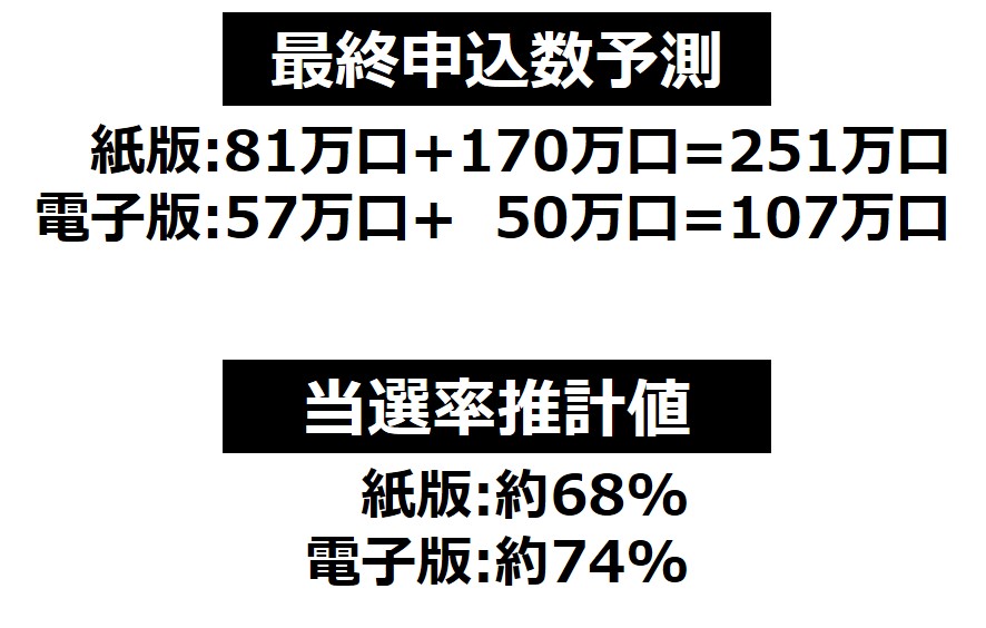 仮に昨年と同等の伸び率だと考えると、今年は紙版の方が当選確率が低くなるかもしれません。