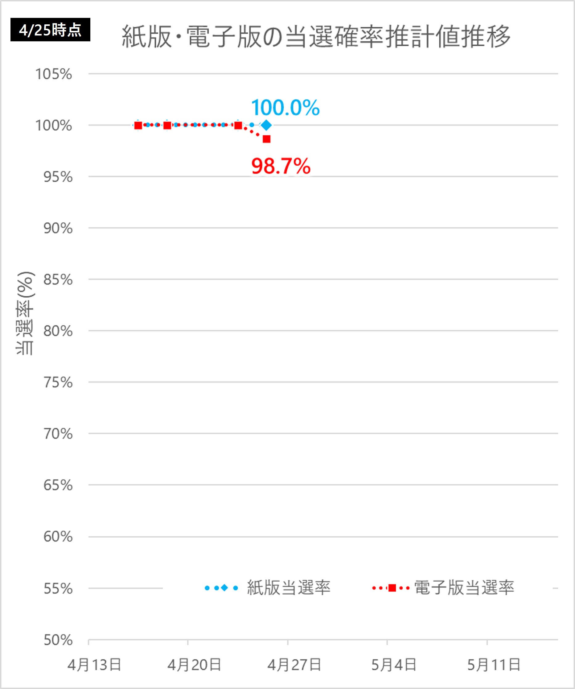 前項でご紹介した通り、今年は去年よりも紙版の伸びが強いので、このままの傾向が続くと、次回発表では紙版の方が当選確率が低くなる可能性が高いと思います。