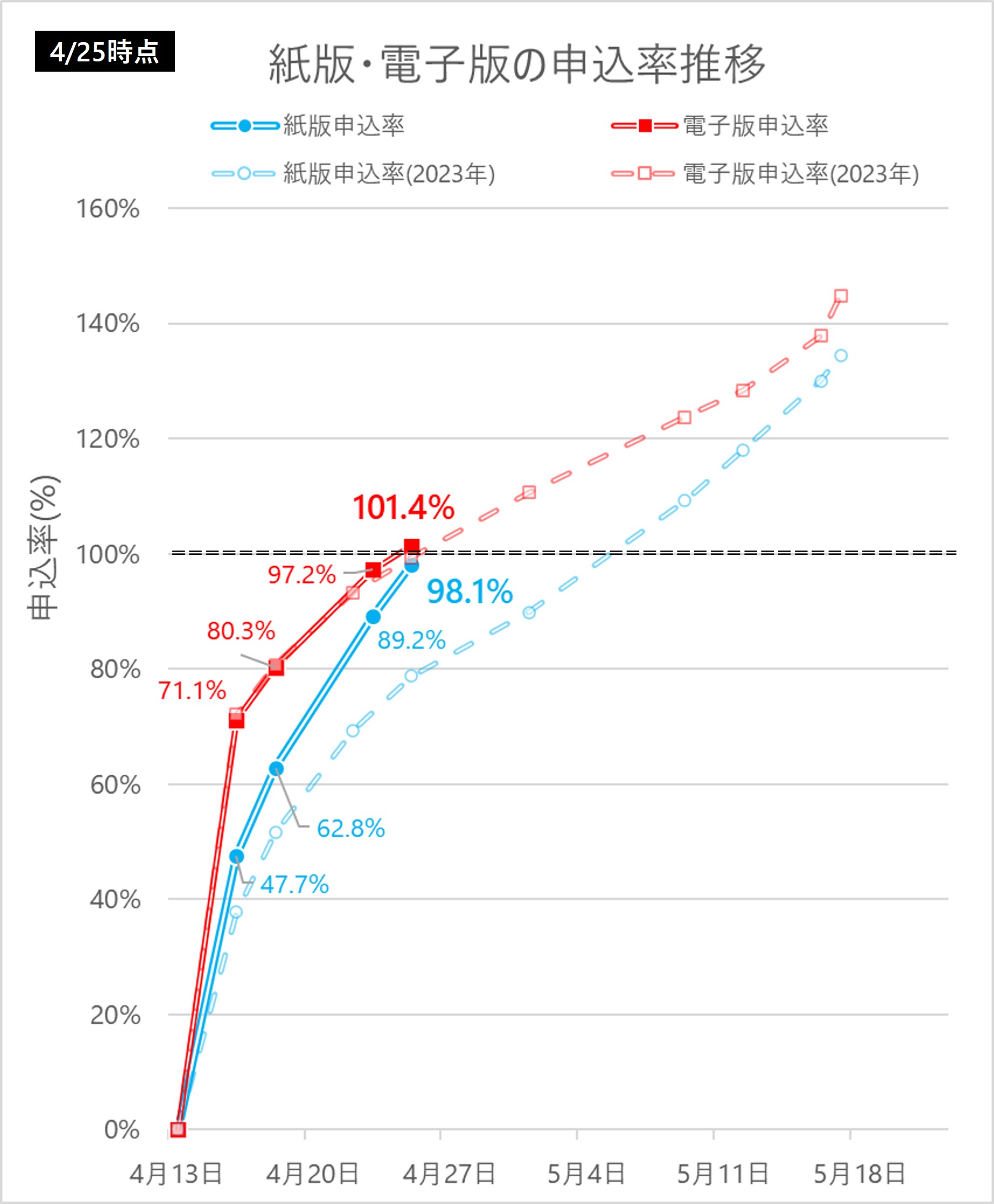 - 電子版:99.3%→101.4%