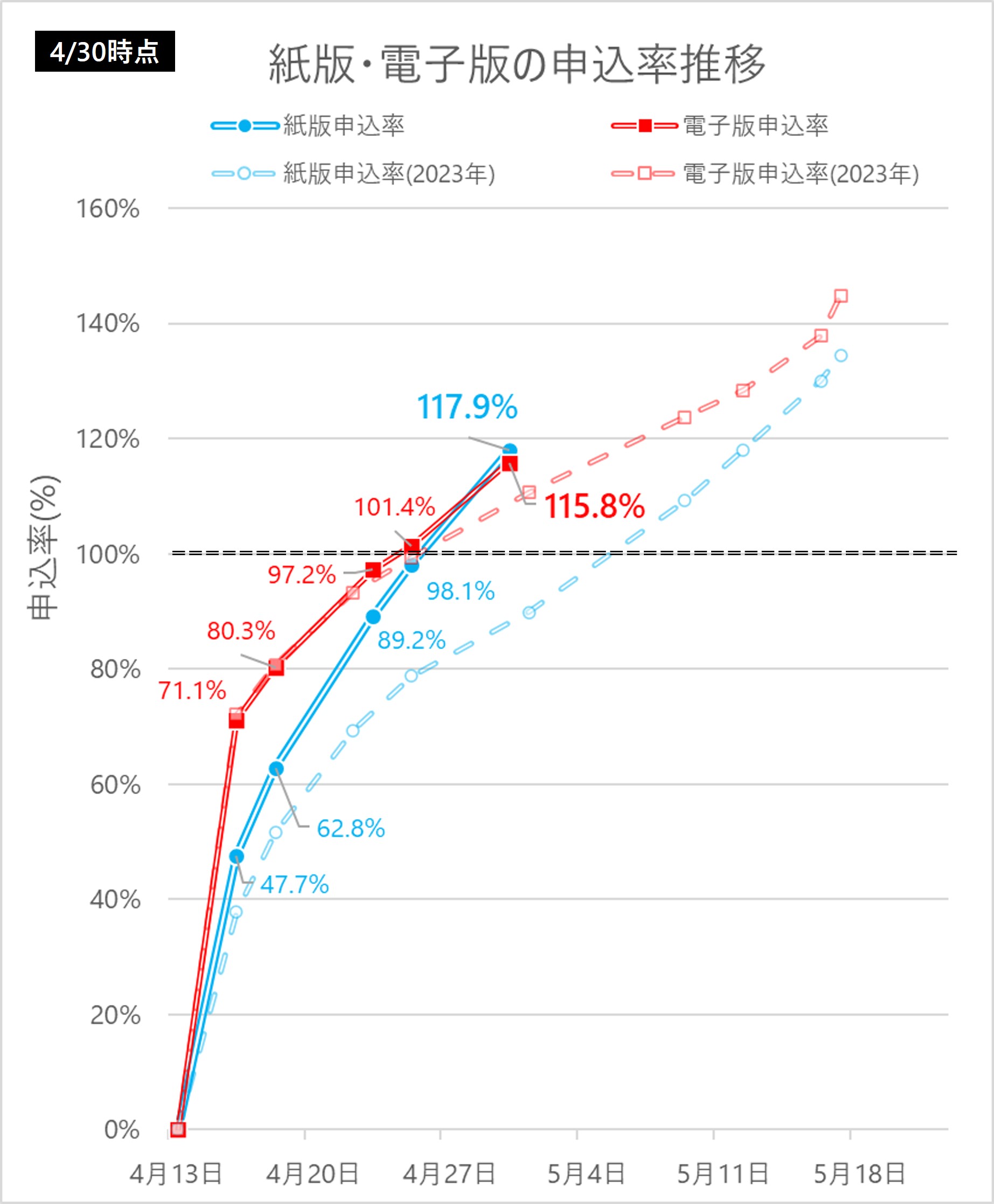 前項でも書きましたが、例年であればこの時期は紙版の申込みの勢いが落ちるのですが、今年はそういった兆候も見えません。