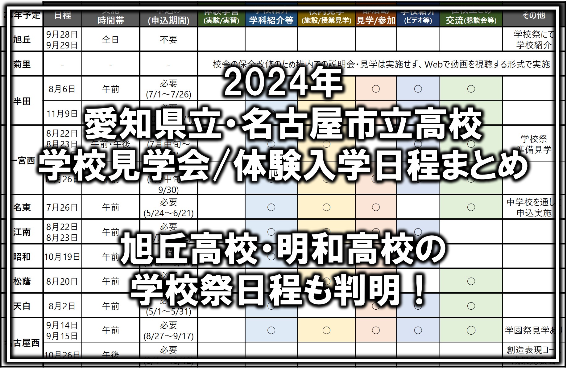 [2024年]愛知県の公立高校における学校見学会と体験入学スケジュール