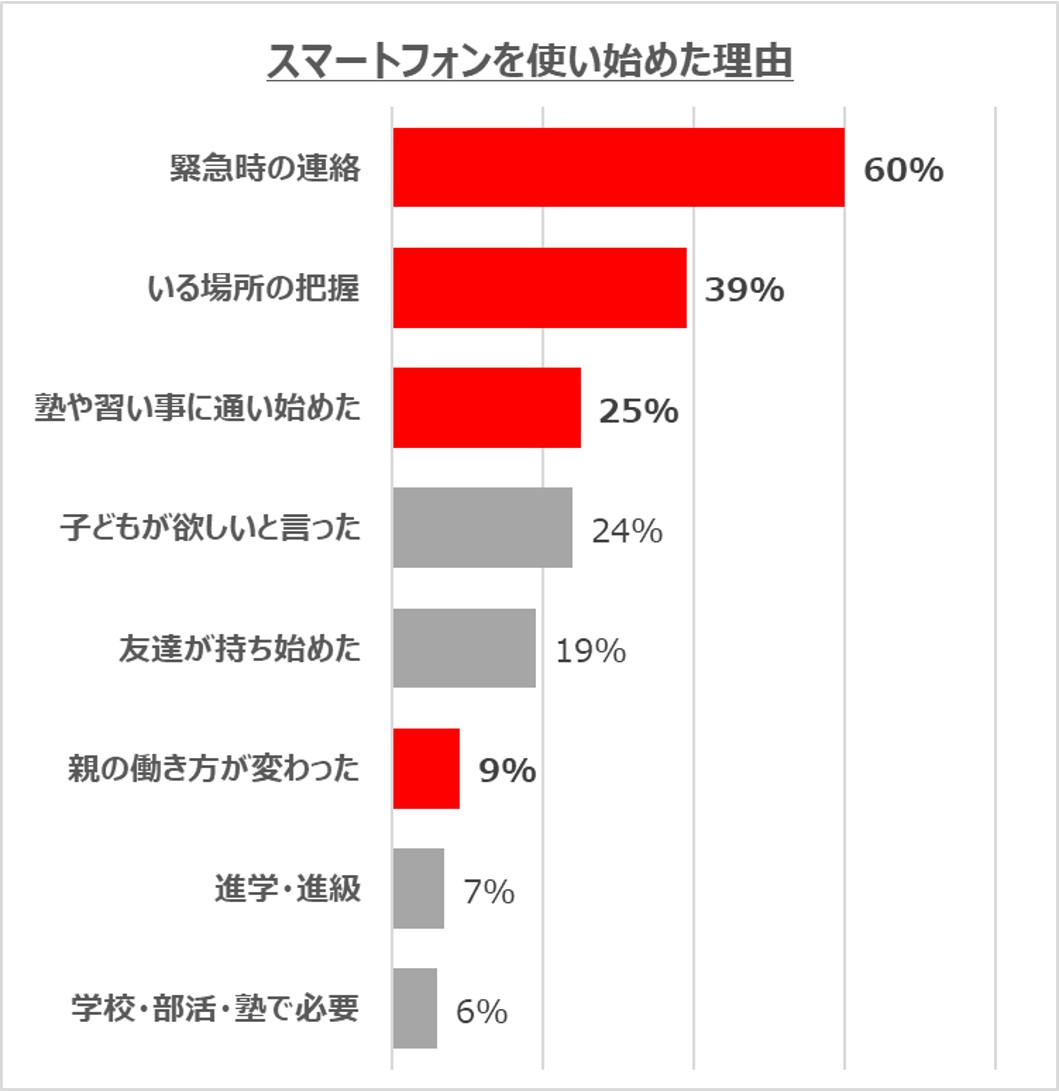 (グラフで赤色になっているのが”親との連絡”と”居場所の確認”を理由としているもの)