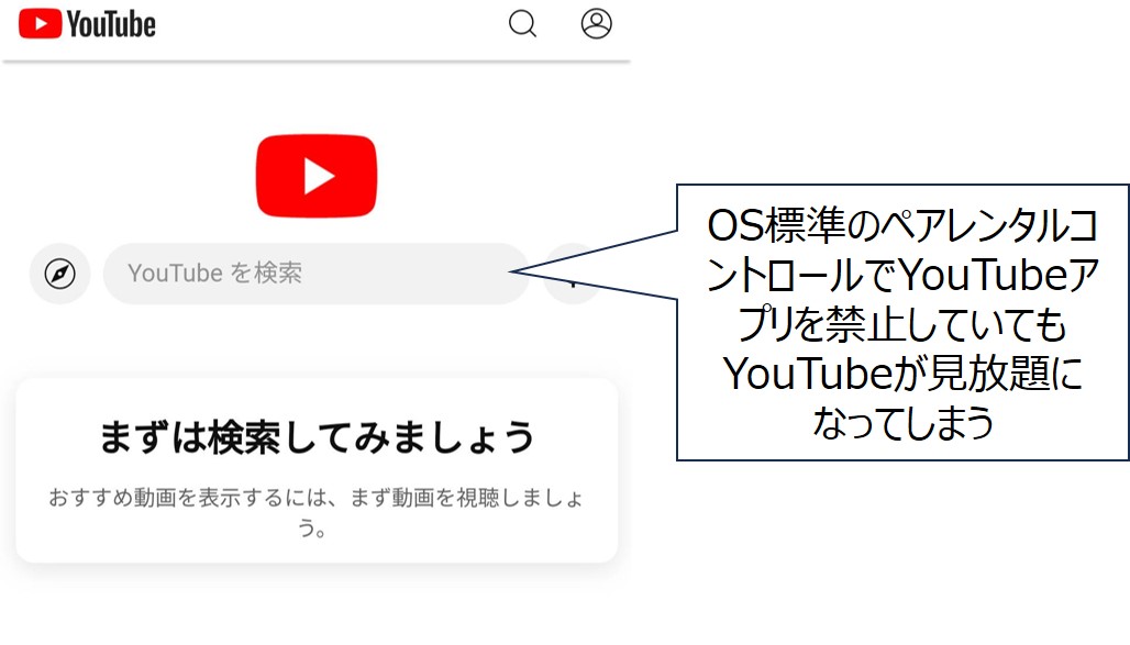 以下のように、OS標準ペアレンタルコントロールでYouTubeアプリを禁止していたとしても、LINEのアプリ内ブラウザを使うと容易にアクセスできてしまいます。