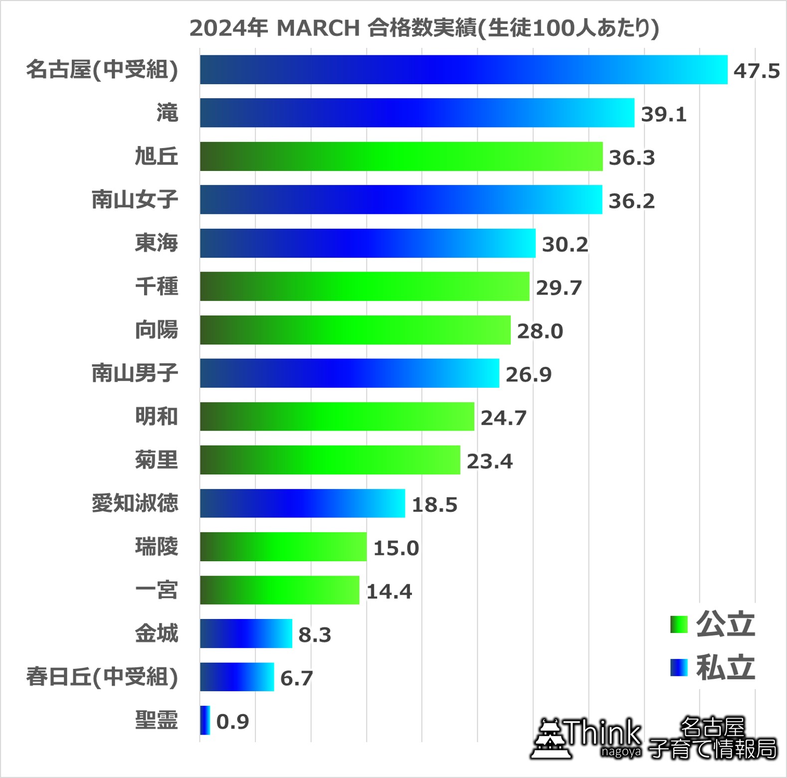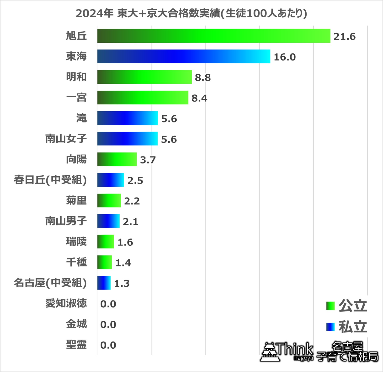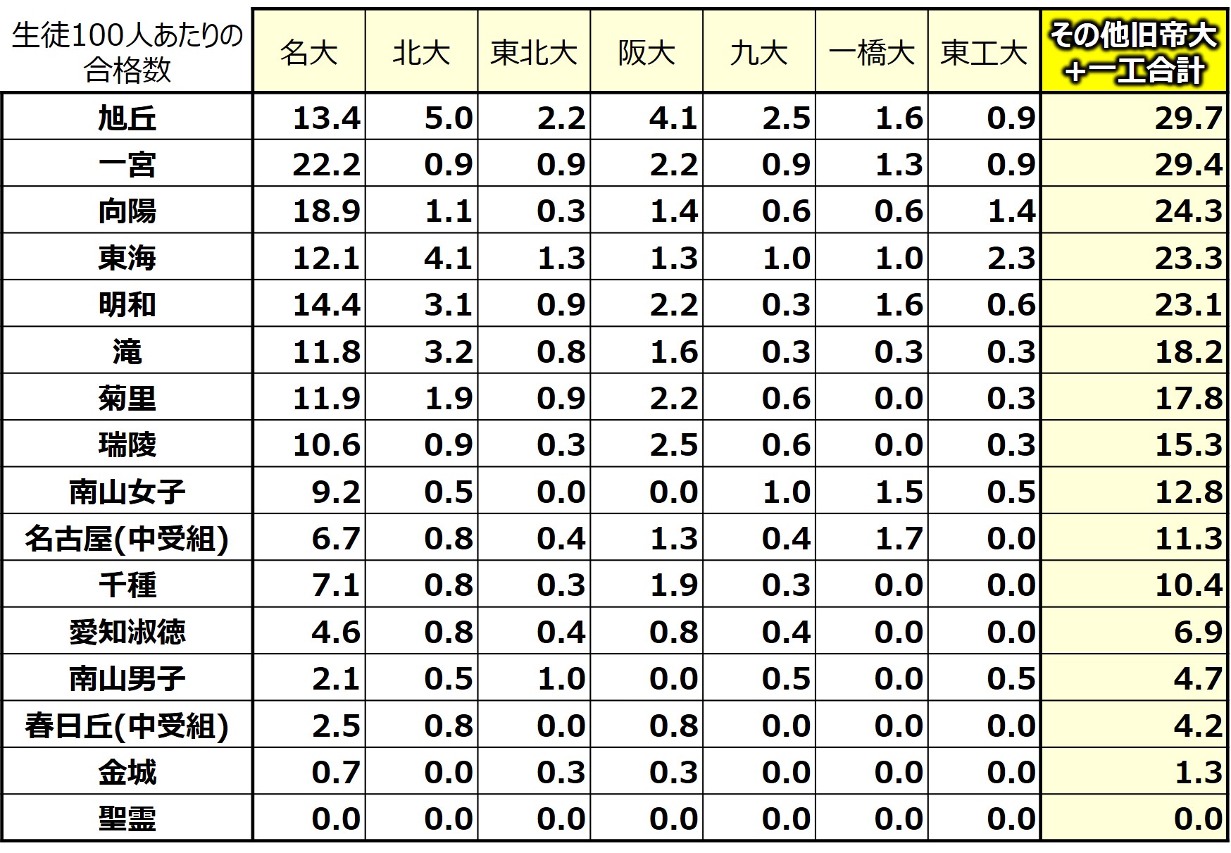 名古屋大の結果と傾向は同じで、やはり公立高校が強いです。