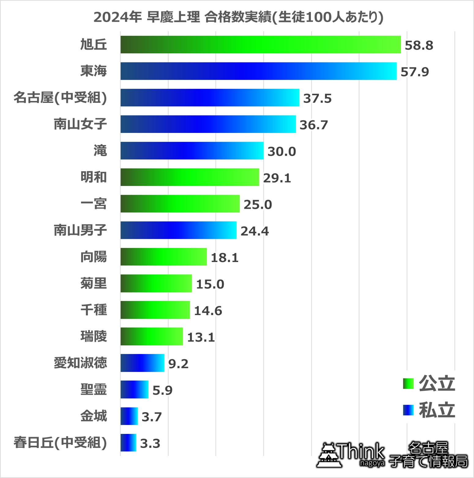 今年は名古屋中の実績が伸びましたが、やはり日能研偏差値60以上の3校とは差がありますね。