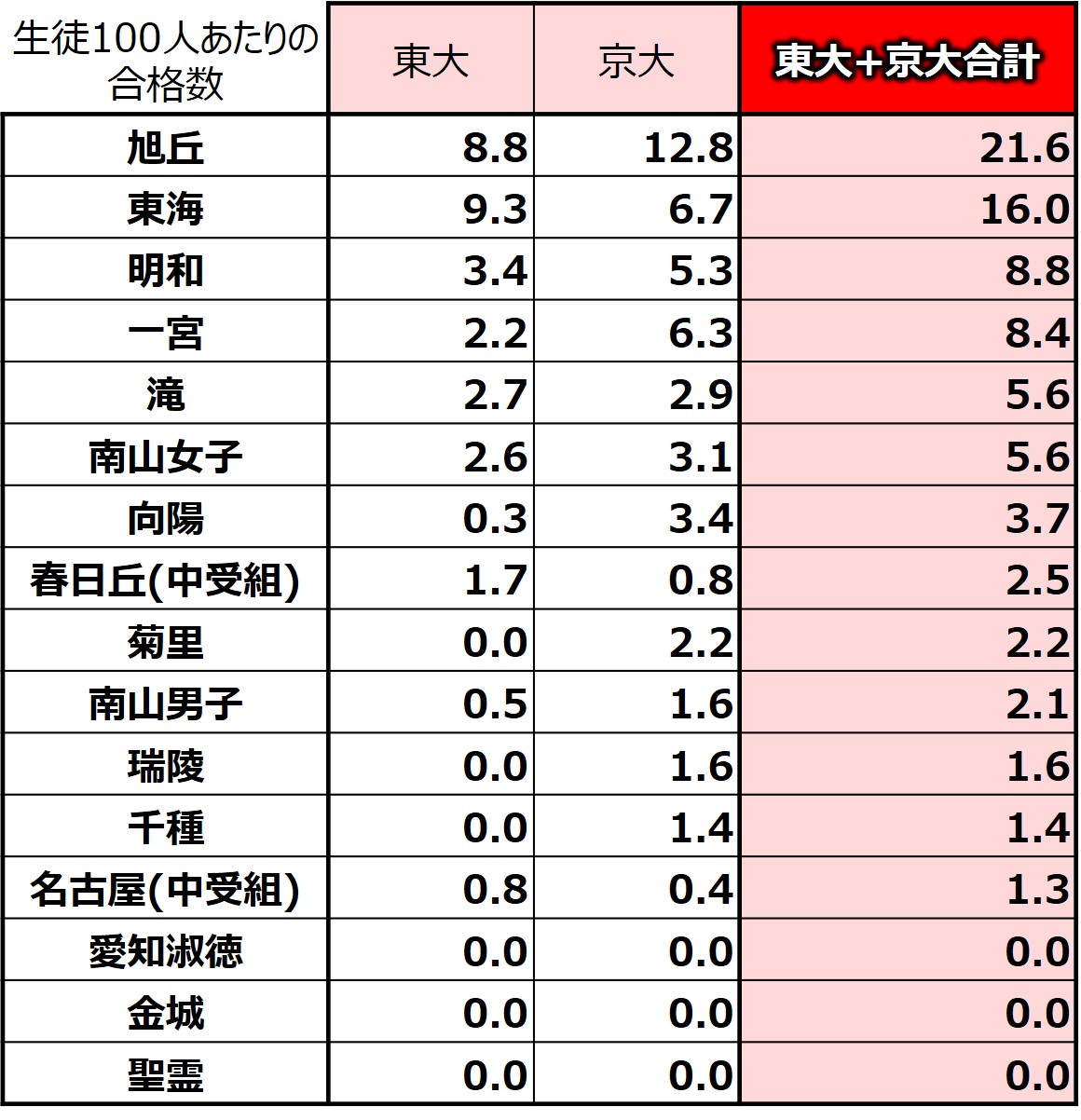 2年前には6位(100人あたり28.8人)だったことを考えると、早慶上理の実績と同じく驚異的な伸びです。