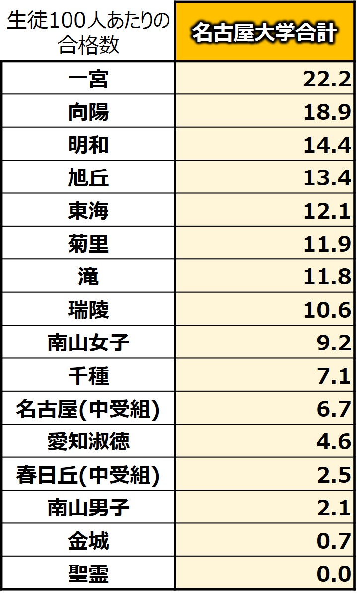名古屋大は例年、一宮・向陽・明和の公立3校が強く、特に一宮と向陽の強さが特徴的。