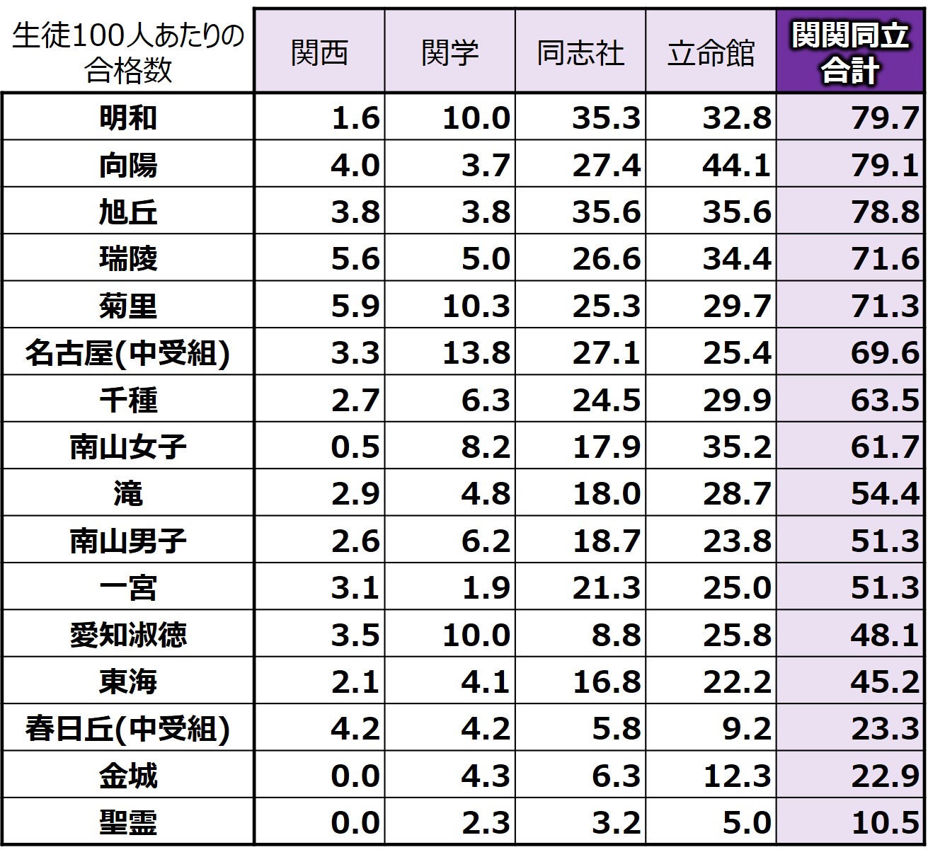 - 100人あたりの数字を算出するベースとなる卒業生の数は、詳細な人数が不明のため、各校の”普通科”の募集人数としている