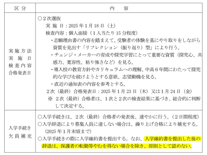 - 入学手続き(=入学確約書の提出)以後の辞退は不可