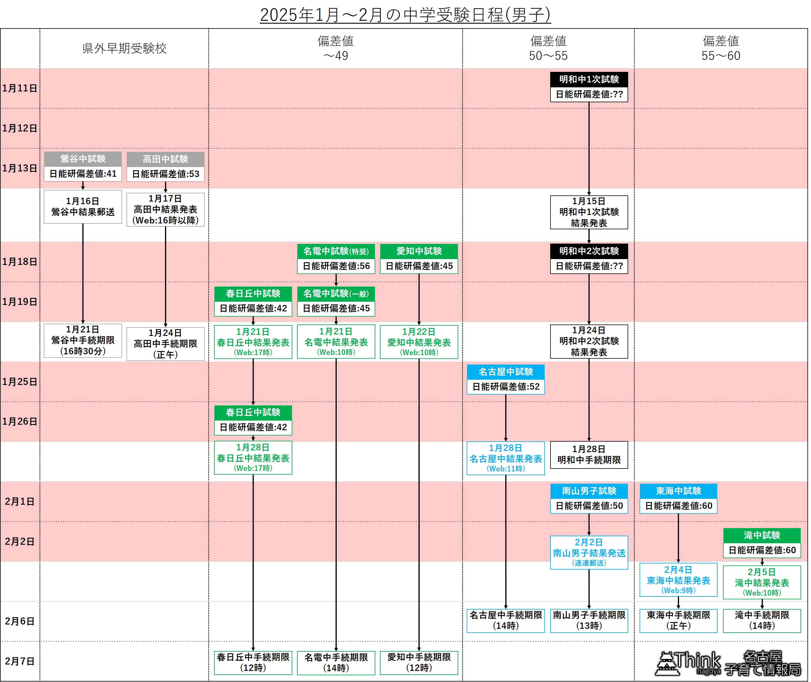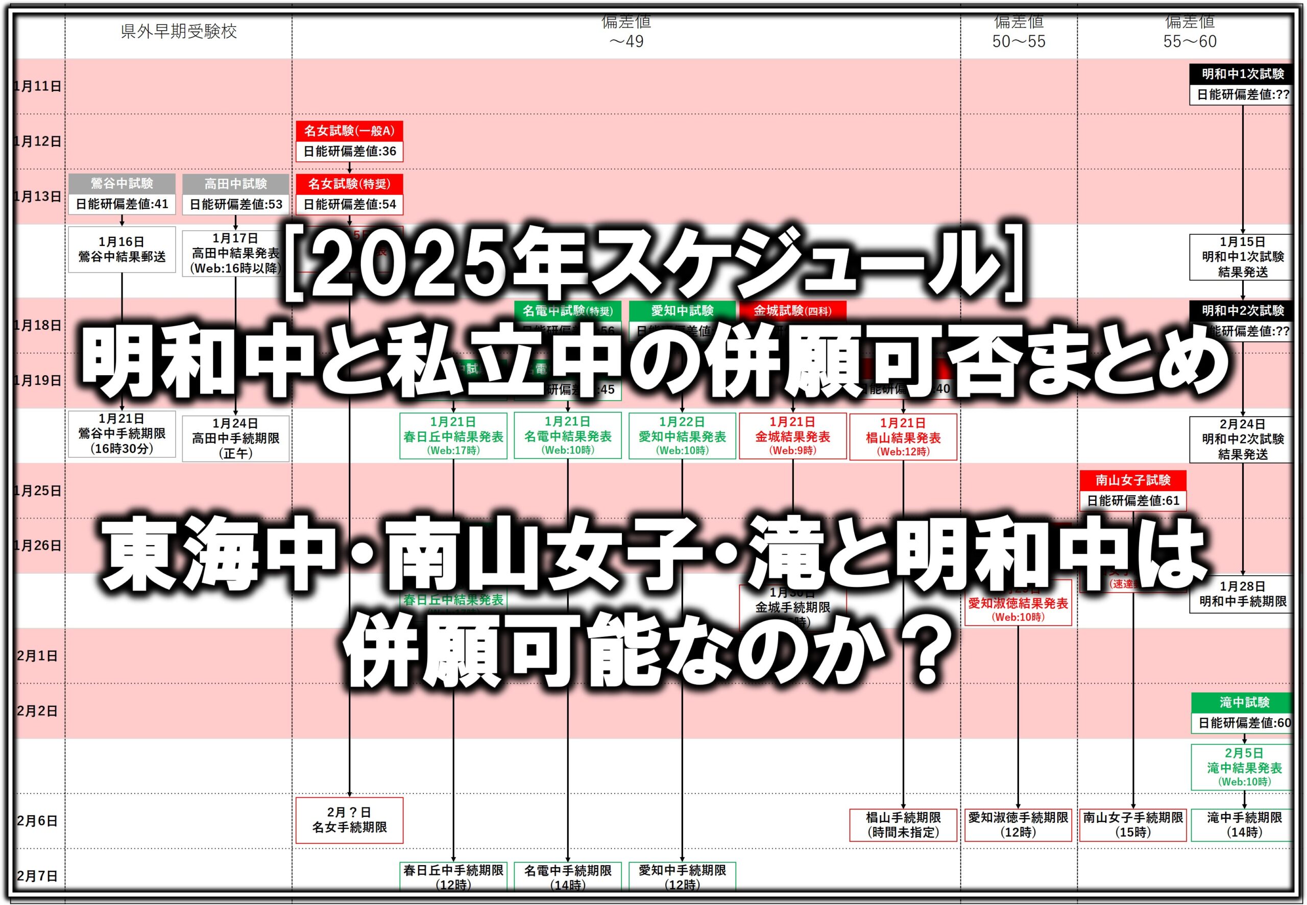 2025年のスケジュールだと東海・滝・愛知淑徳・南山男子との併願は注意が必要