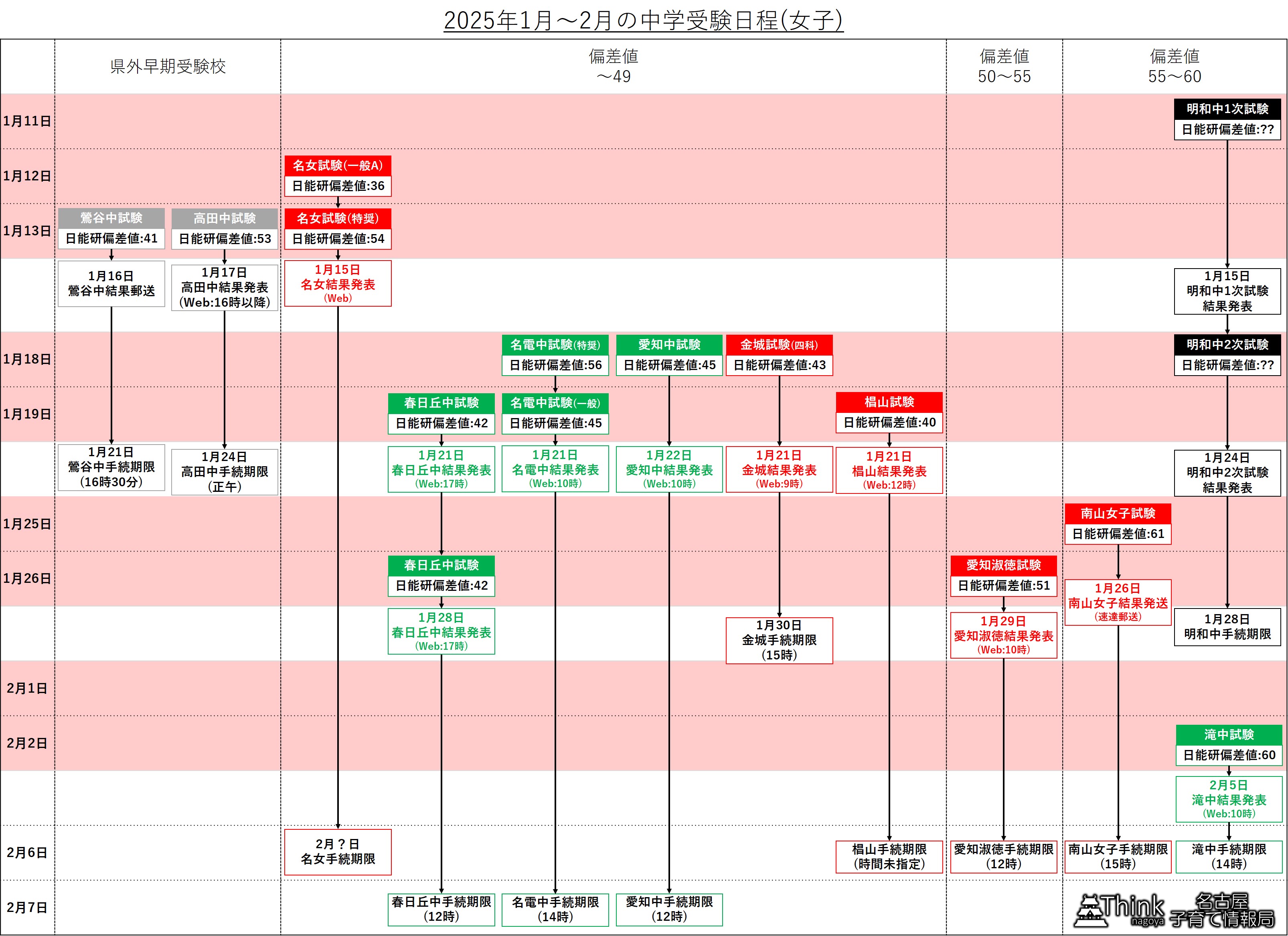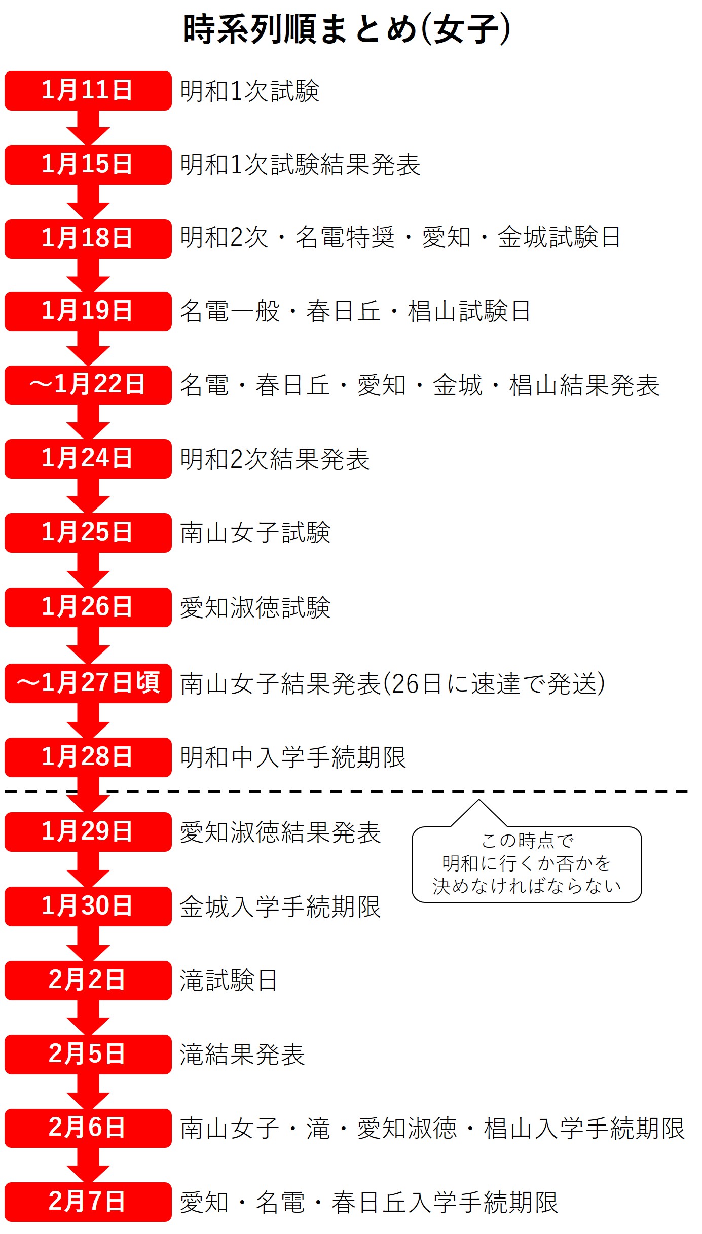 - 愛知淑徳・滝の2校は、明和中の入学手続き期限後に合否発表がある