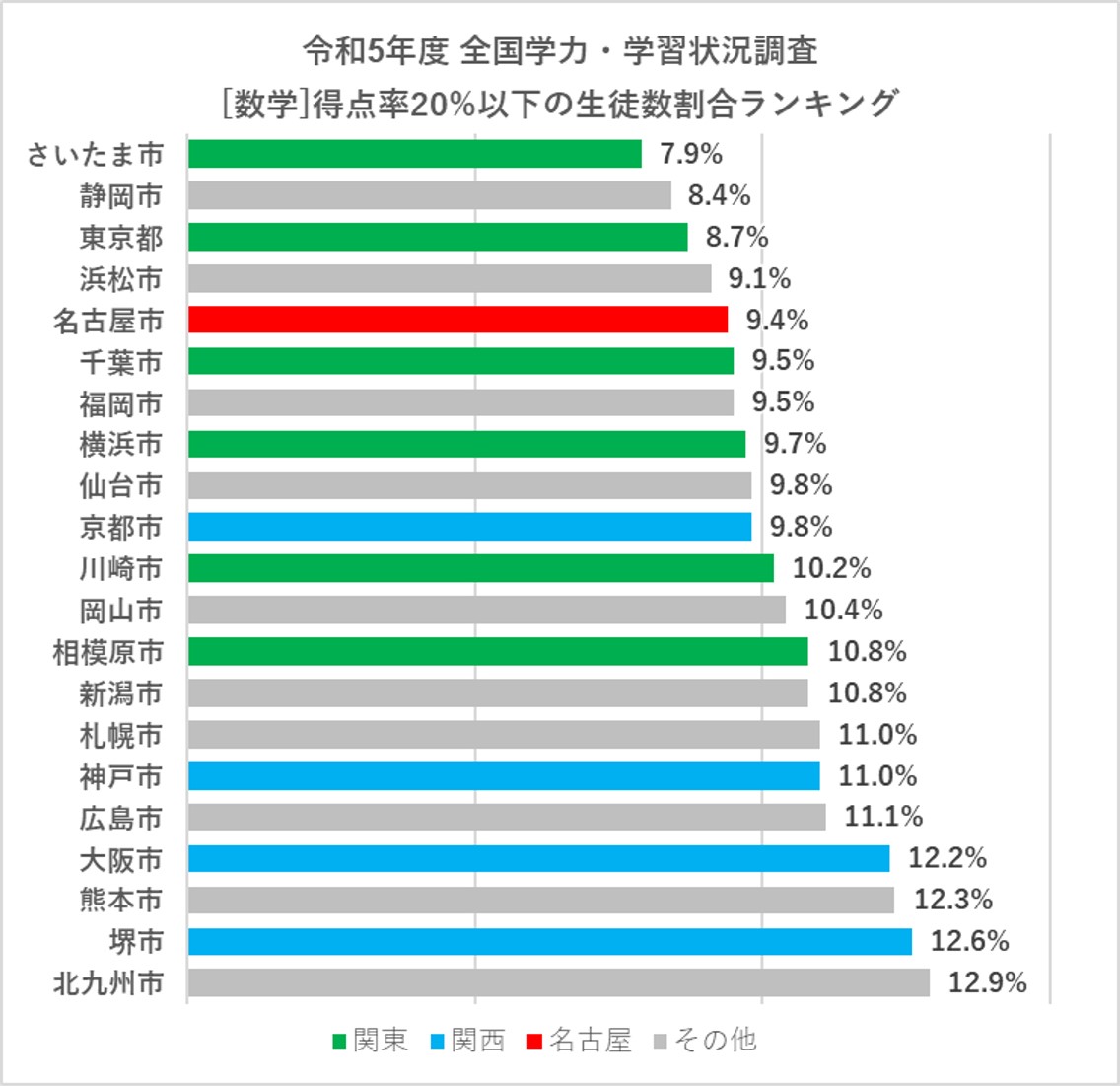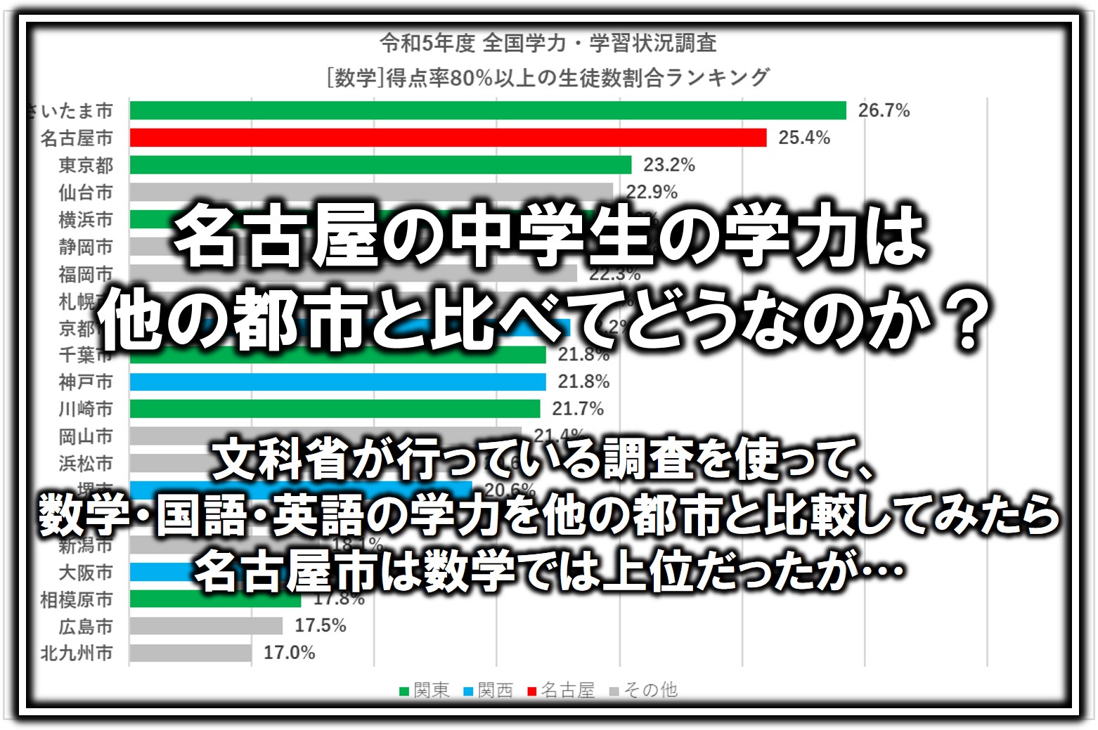 「名古屋市の中学生の学力は他の都市と比べてどうなのか」