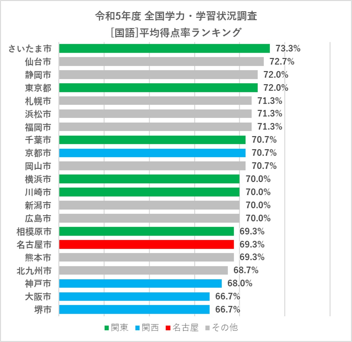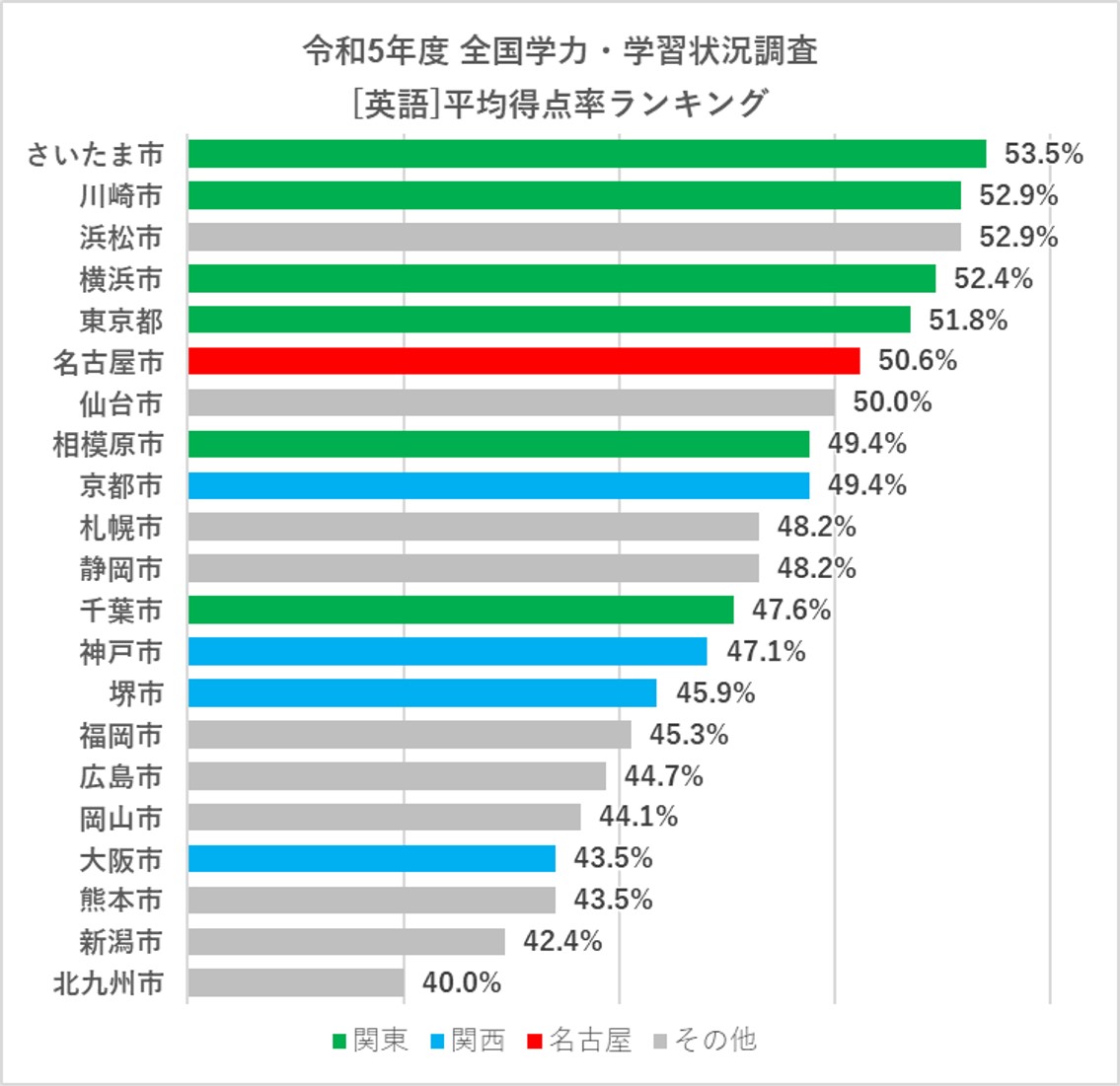 こちらも平均得点率と同様、名古屋市は優秀で、トップ5に入っています。