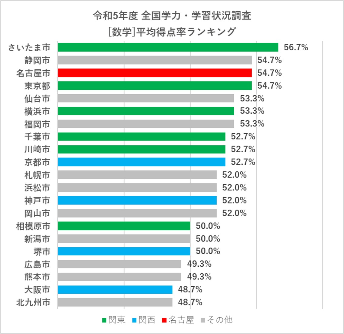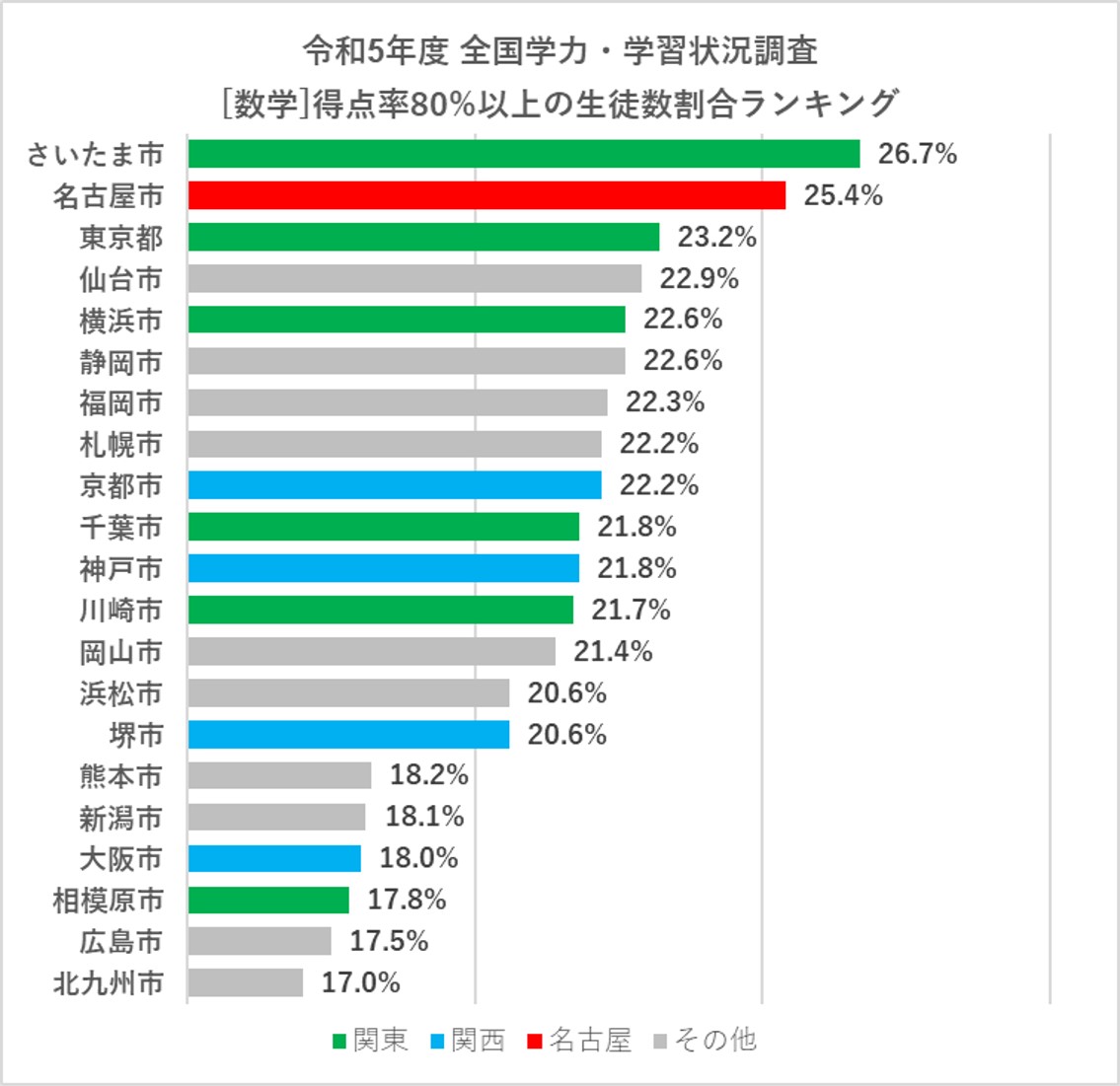 こちらは、国語とは大きく異なる結果で、名古屋市はトップ3に入っています。