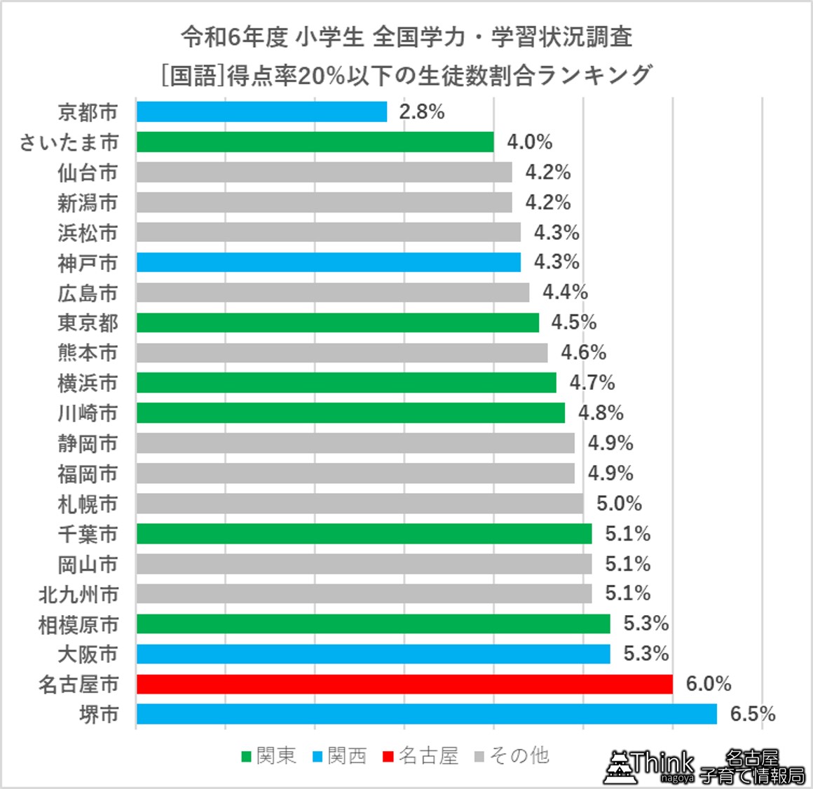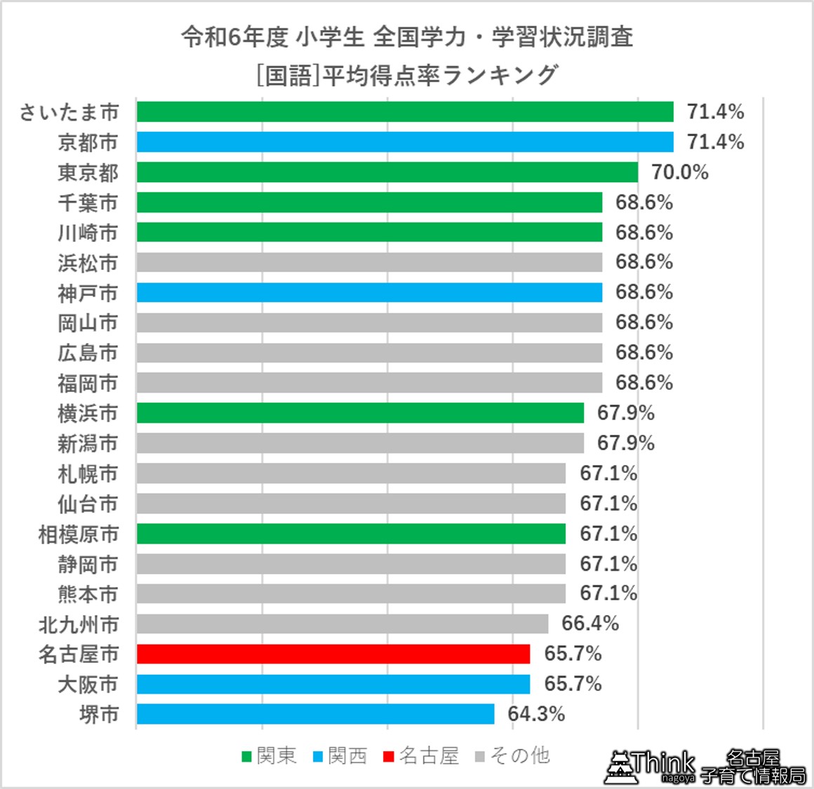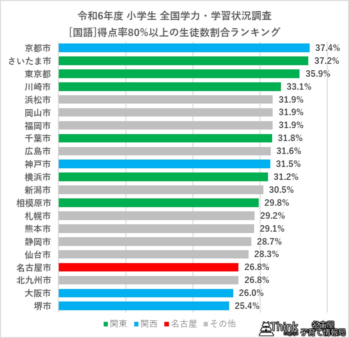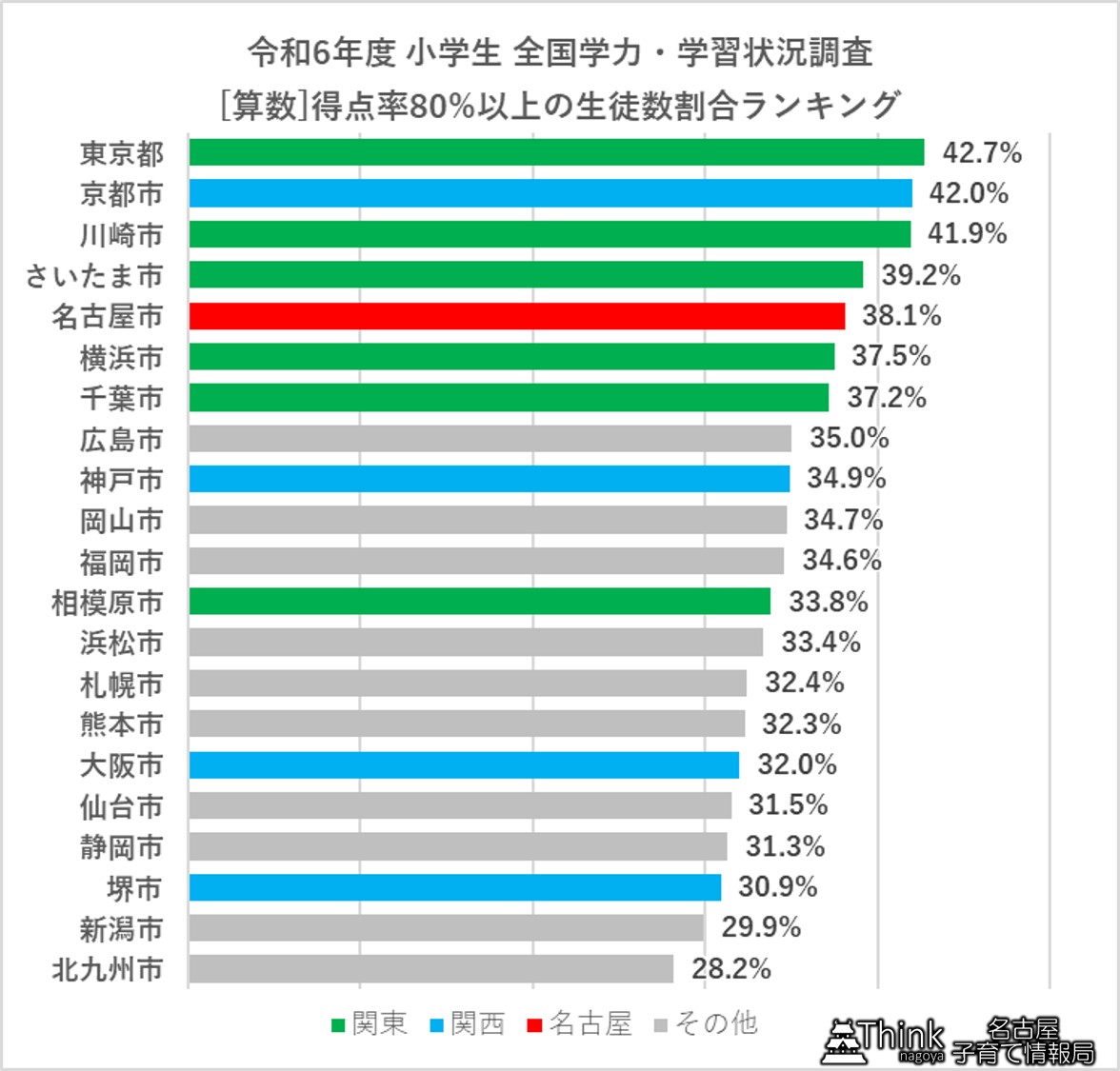 名古屋の小学生の学力は他の都市と比べてどうなのか?