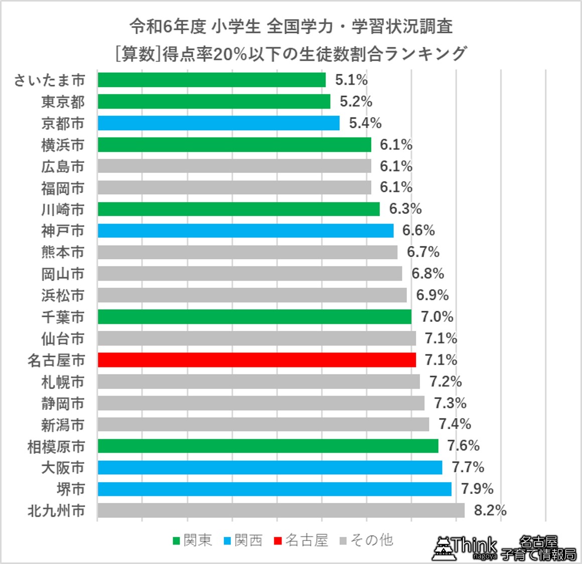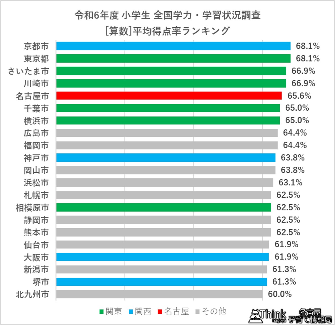 こちらは、国語とは大きく異なる結果で、名古屋市はトップ5に入っています。