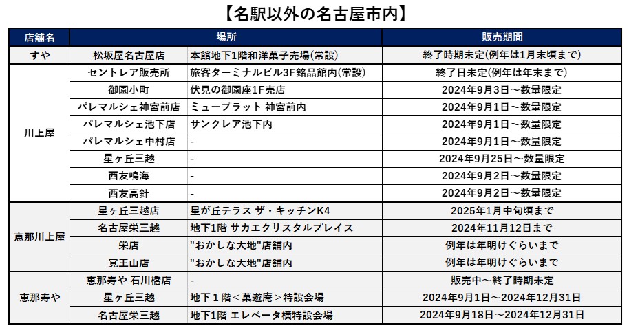 その他、名駅以外でも購入できるので、最後のまとめの部分に記載しておきます。