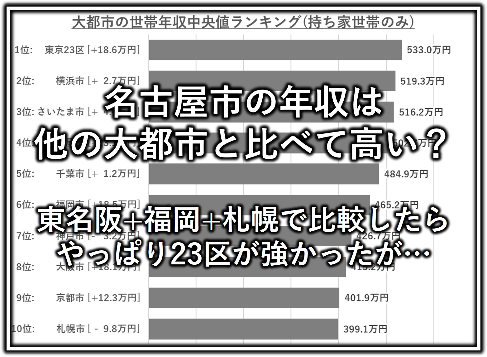 [23年データ]名古屋の世帯年収は他の大都市と比べて高いのか?