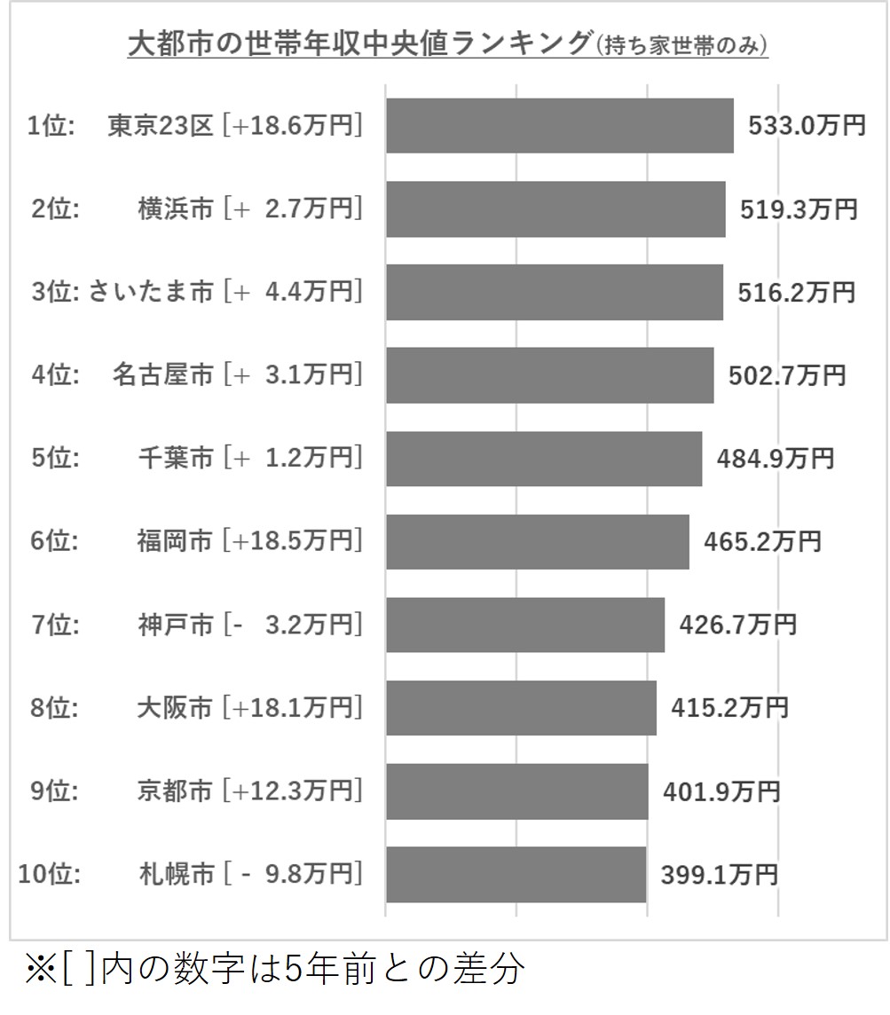 大都市の世帯年収中央値ランキング
