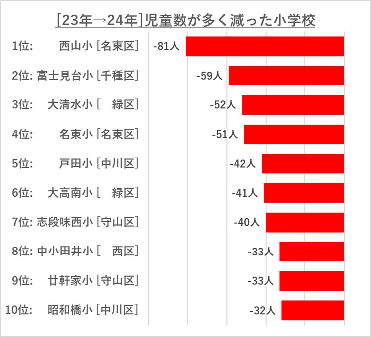 - 児童数の増減が大きい小学校[23年→24年データ]