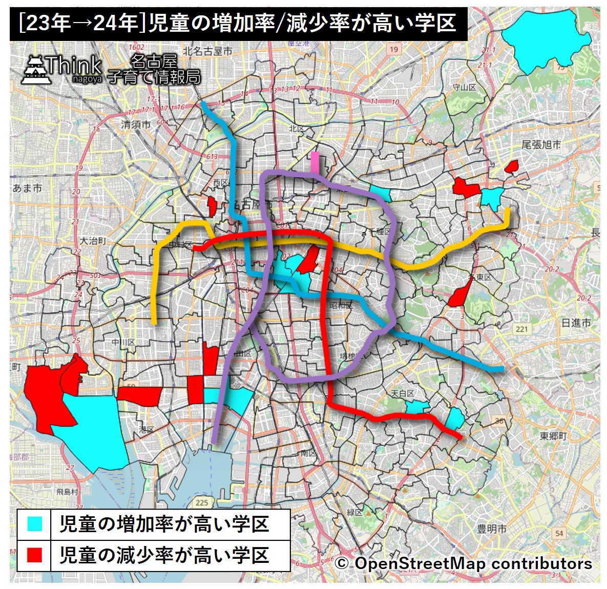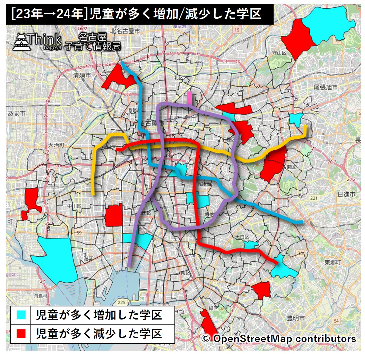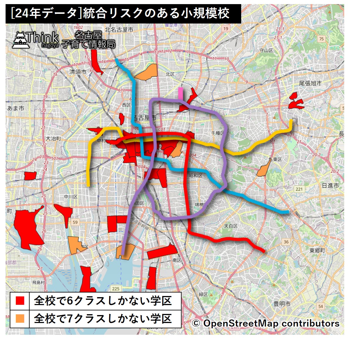 昨年、名古屋市内の小学校において統合のリスクがある小規模校についてまとめましたが、24年の最新データが公開されたので、人数が多い小学校の話も含めてまとめることにしました。