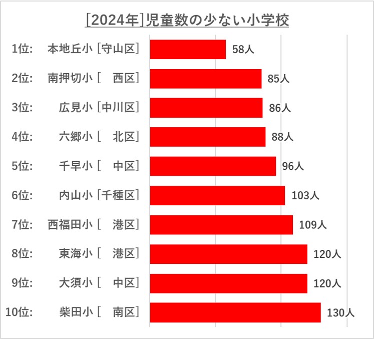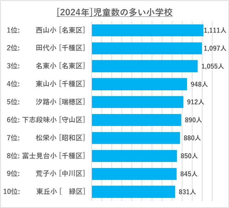 [24年データ]名古屋の児童数が多い小学校・少ない小学校ランキング