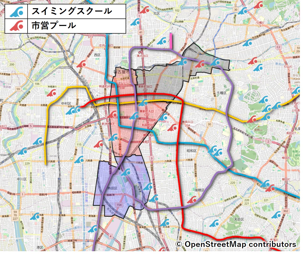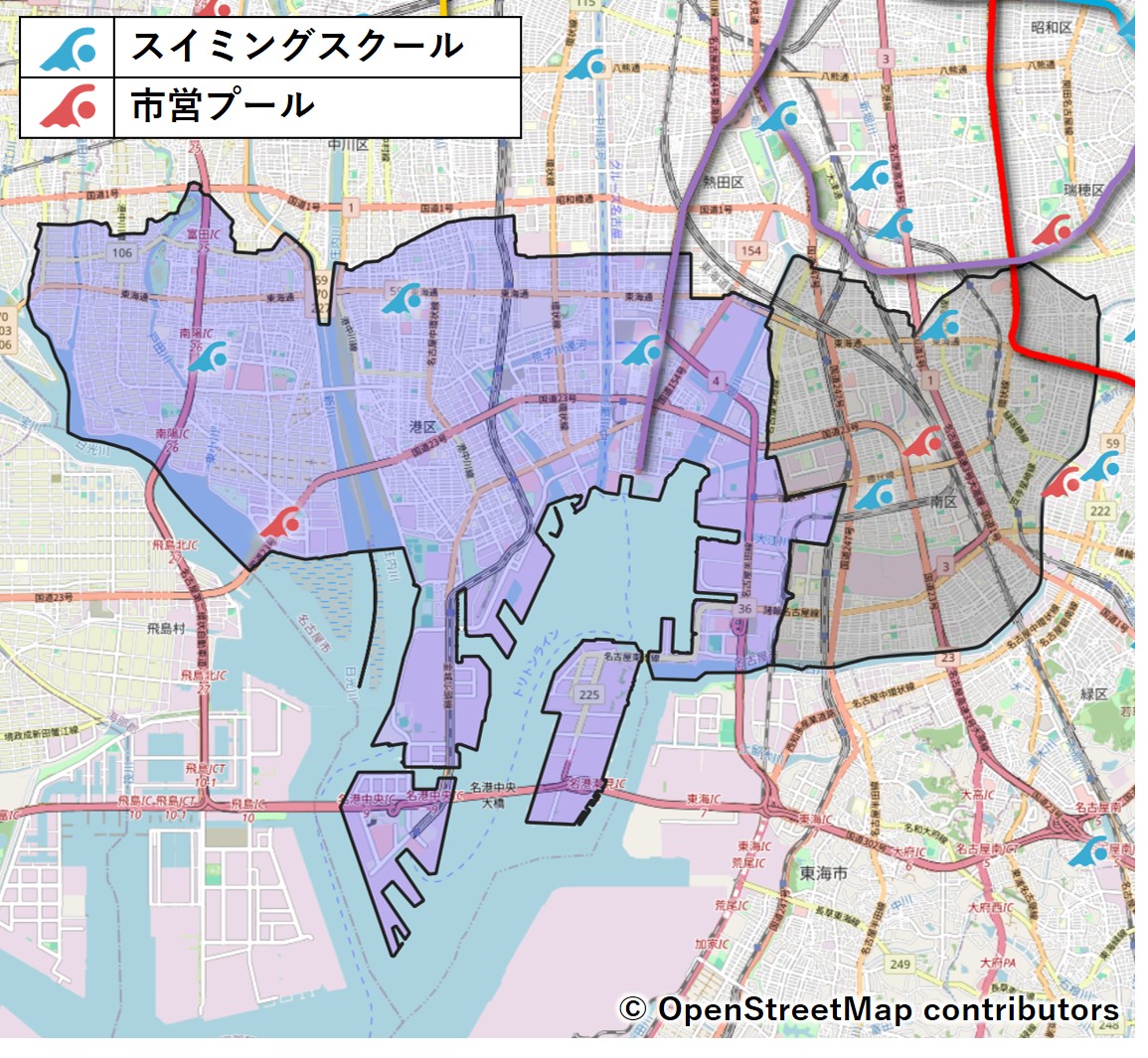 ただ、熱田区には市営プールが無く、区の西側はプール空白地帯になっていますね。