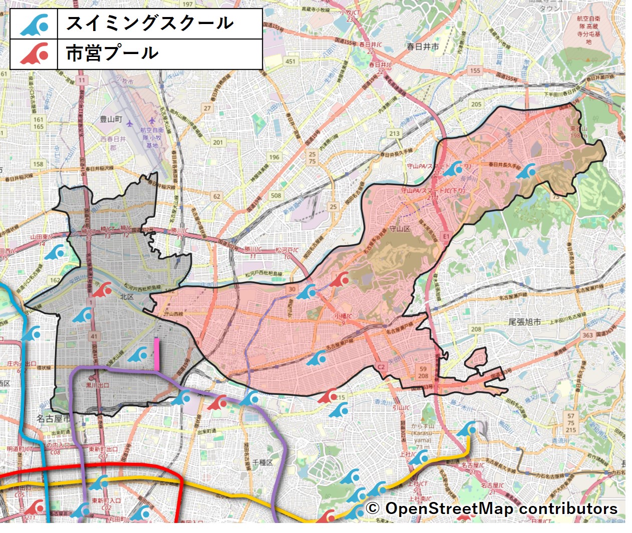 守山区はかなり広いですが、区の西側にプールの空白地帯があります。