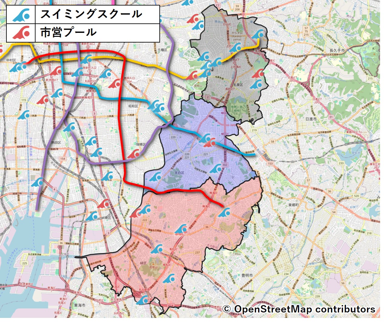 名古屋市各区のスイミングスクール・市営プールの状況