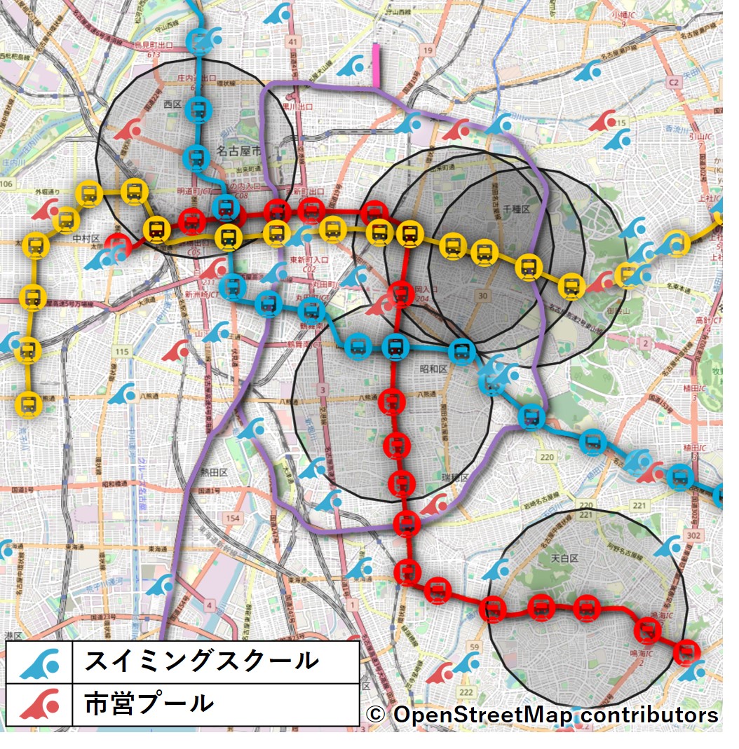 名古屋のスイミングスクールまとめ part2 スイミングスクールと駅・学校の関係まとめ