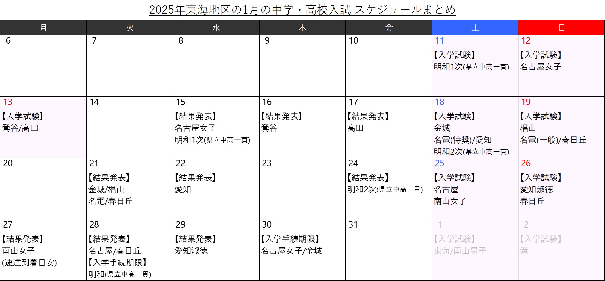 2月2週目は出校日が集中して設定されているところなので、こちらも避けたほうが良さそう。