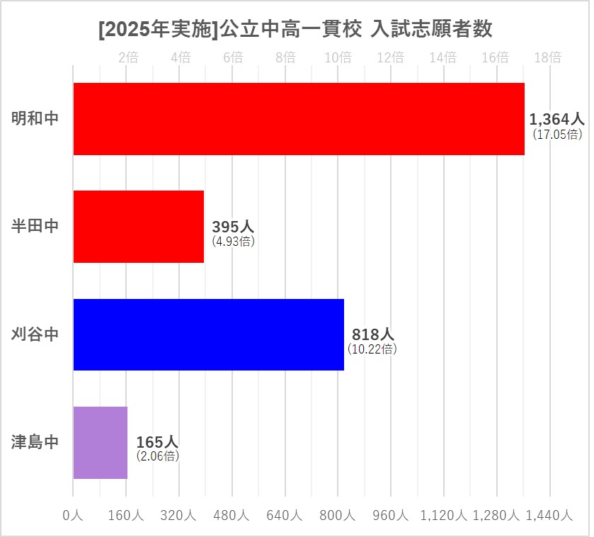 上記の比較を見ると、今回の明和中の倍率がかなり高い、ということはイメージできるかと思います。