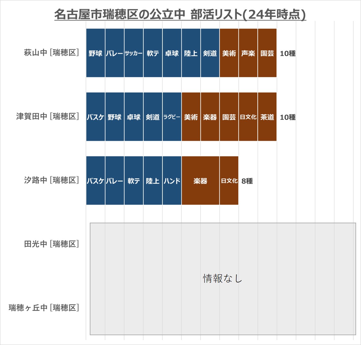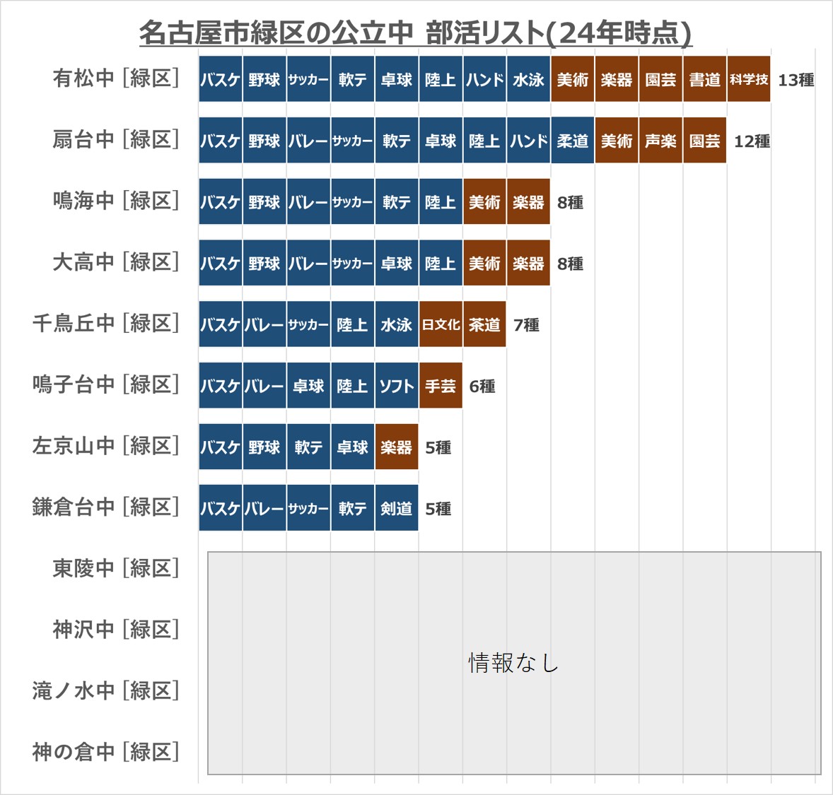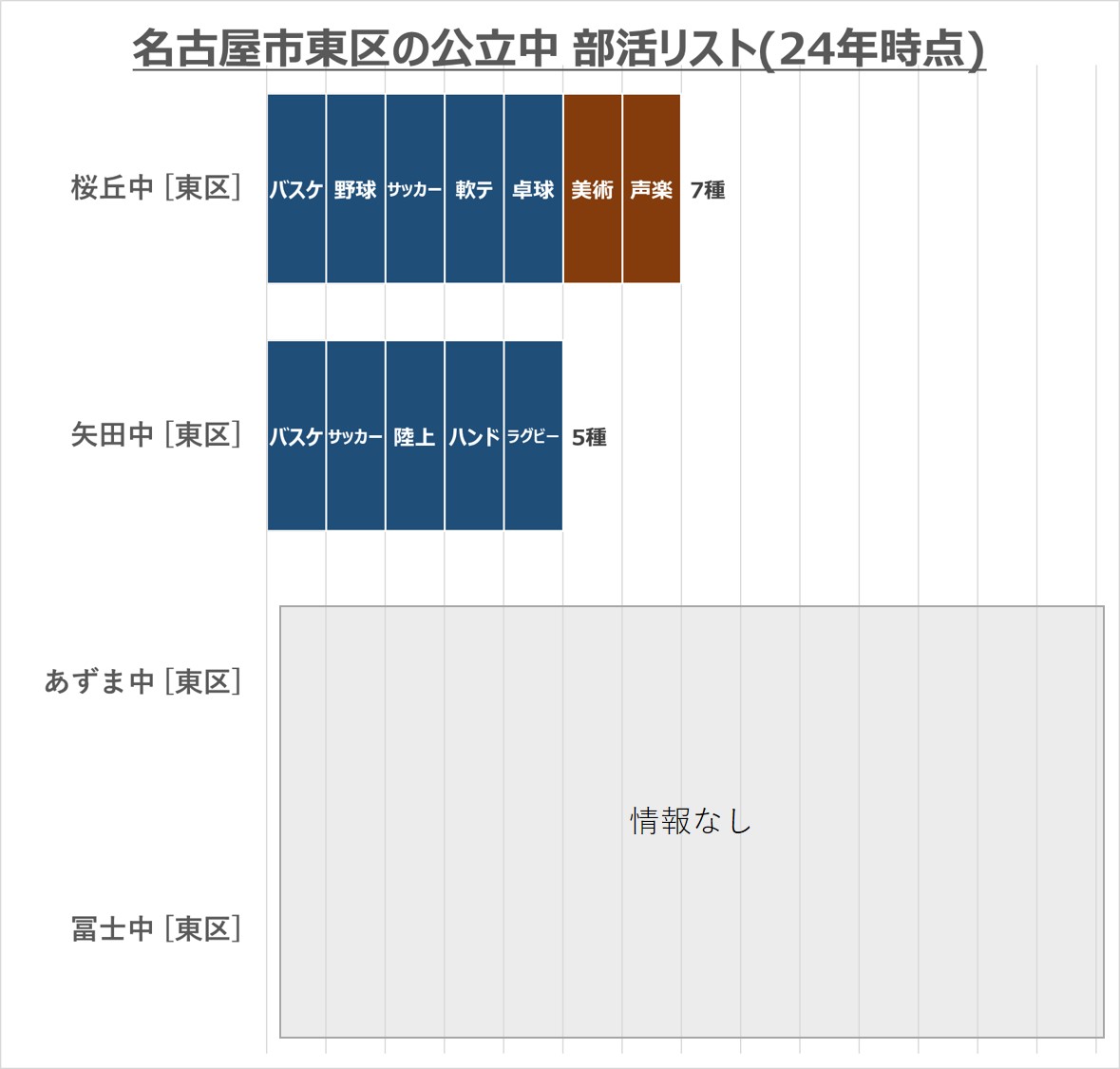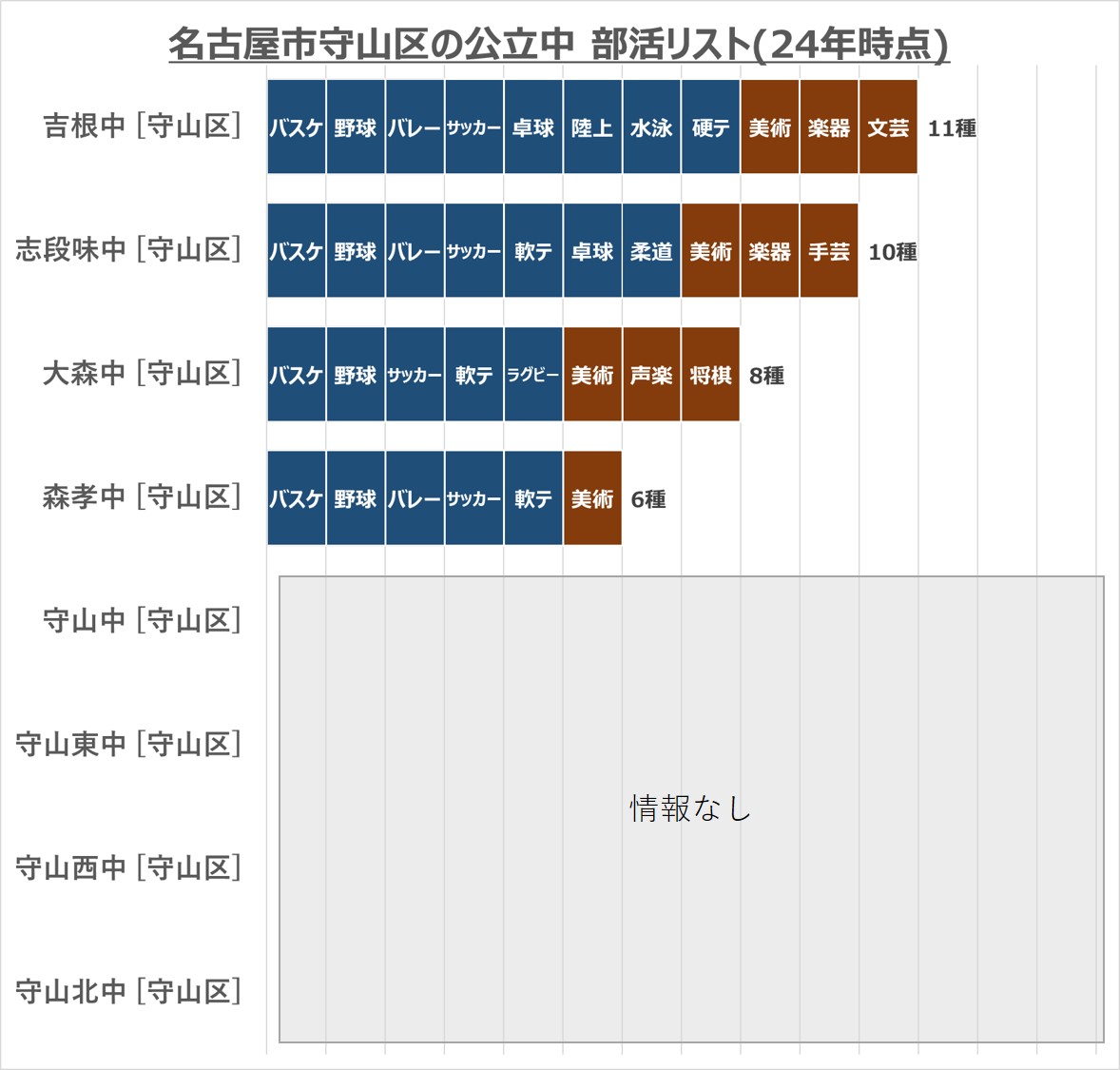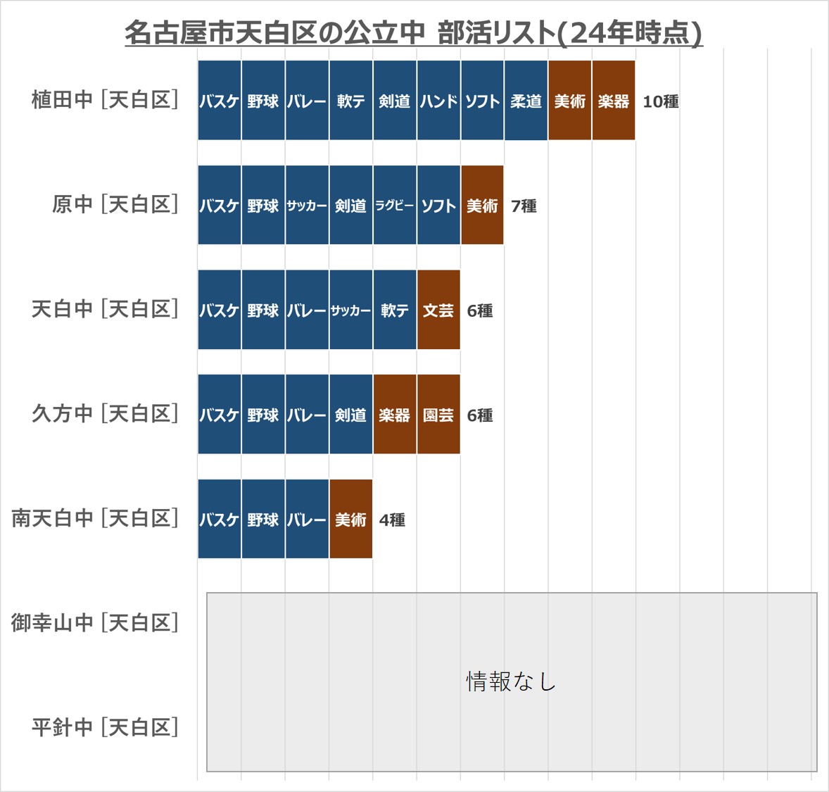 名古屋市の公立中で部活の選択肢が多いのはどこか?(24年データ)