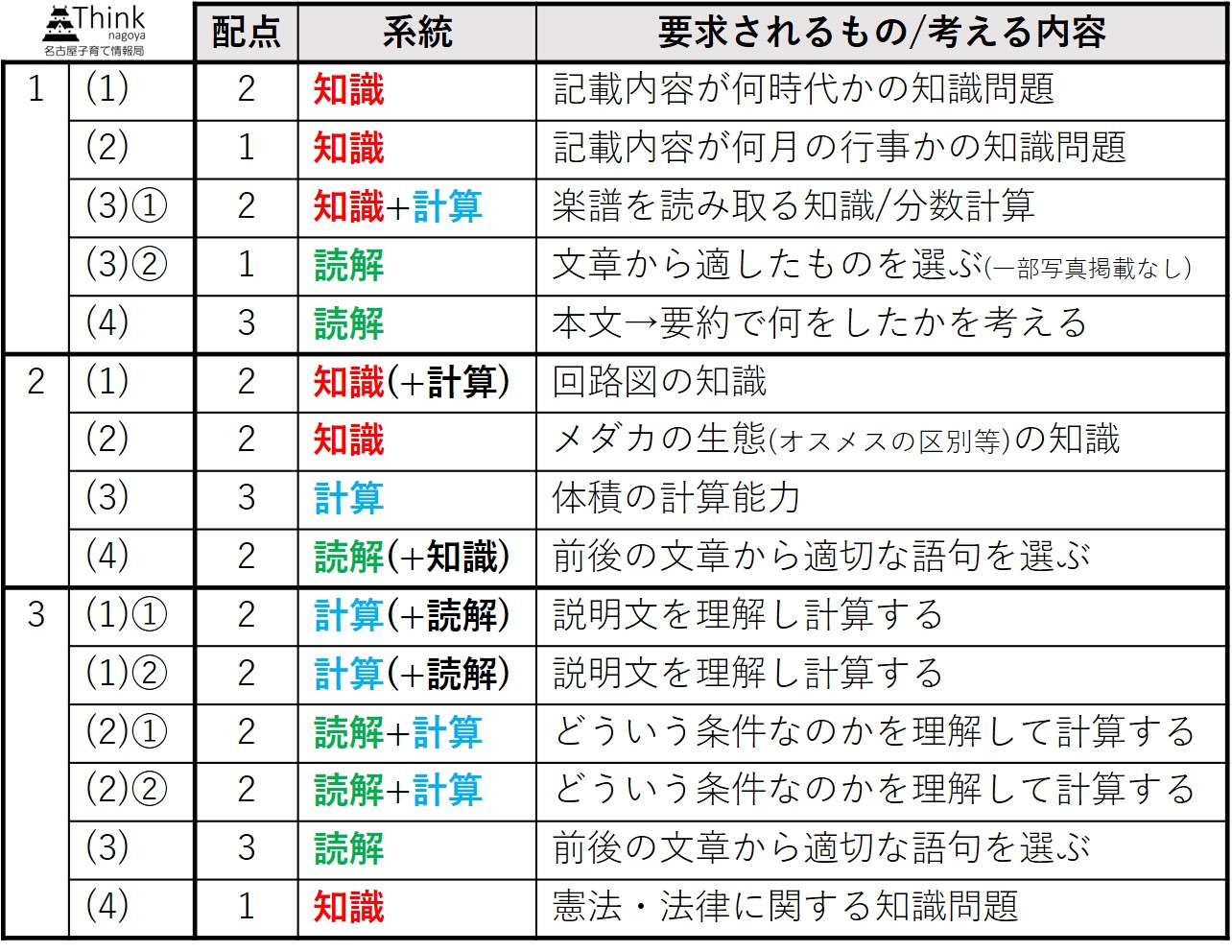 今回の入試では、倍率(≒入学難易度≒受験生のレベル)に差がある明和・津島・半田・刈谷4校で同じ試験問題を使用するルールだったため、学校に合わせた難易度にする、という事ができなかったのも、そこまで高難度にならなかった理由の1つだと思います。