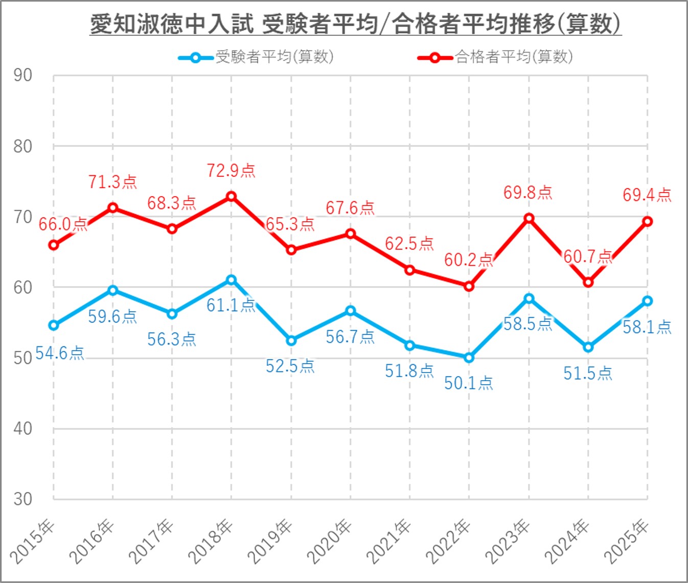 となっており、やはり愛知淑徳中も算数で差が出る入試になっていると言えます。