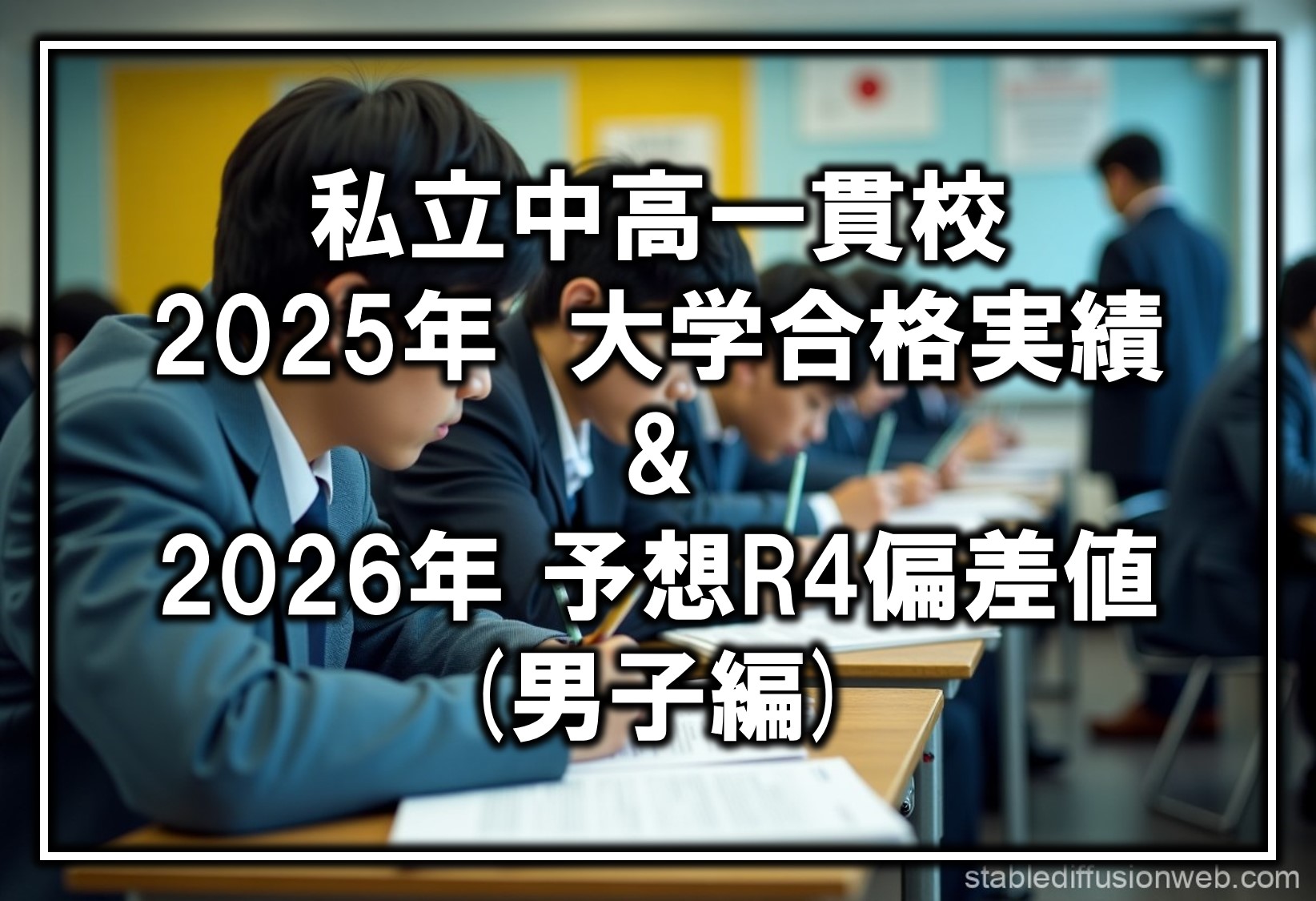 「集中して大学受験勉強に取り組む日本の男子高校生たちの様子」