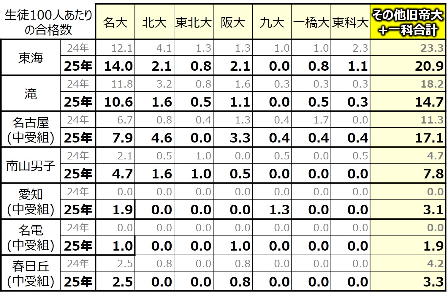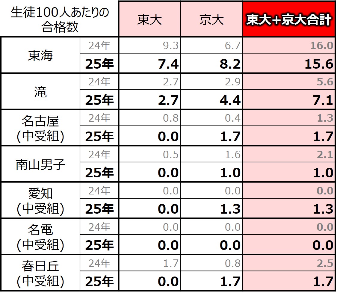 やはり、東大・京大の実績は東海が圧倒的で、2位の滝と比較しても差が大きいです。