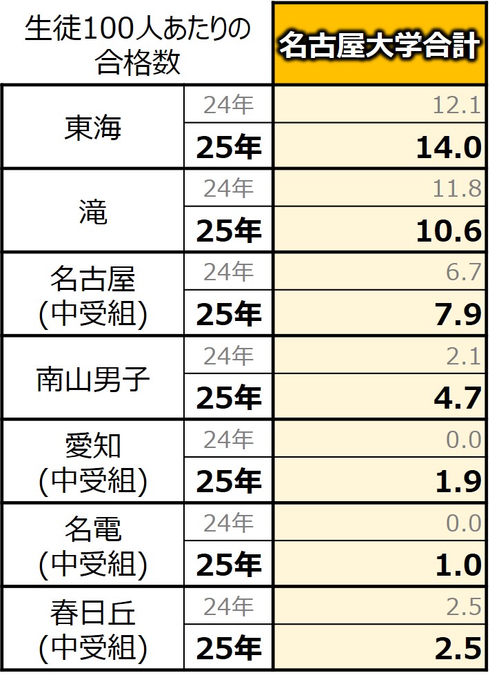 (前項の通り、2025年の名古屋中は国公立が好調だったので学年的に国公立志向が高い学年だった可能性はありますが)