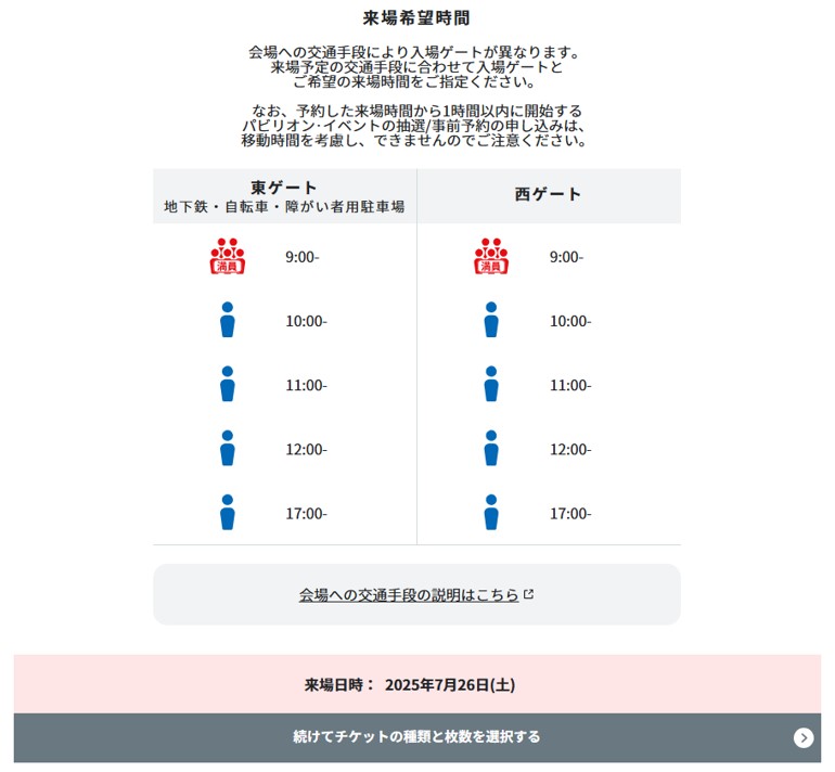 どこかで絶対に万博に行くことが決まっているのであれば、とにかく一番行く可能性が高い日の9時入場チケットを確保しておいて良いと思います。