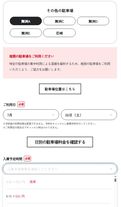反則的な優遇を受けられる8時入場の公式駐車場枠はすぐに売り切れる