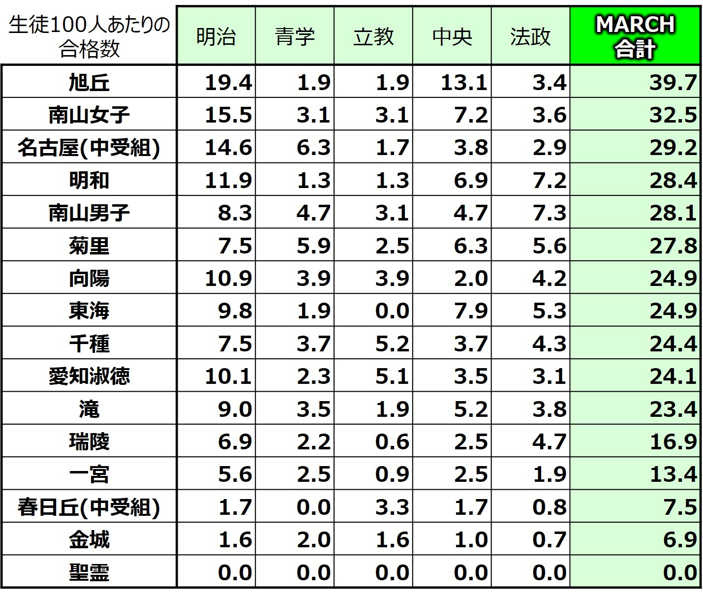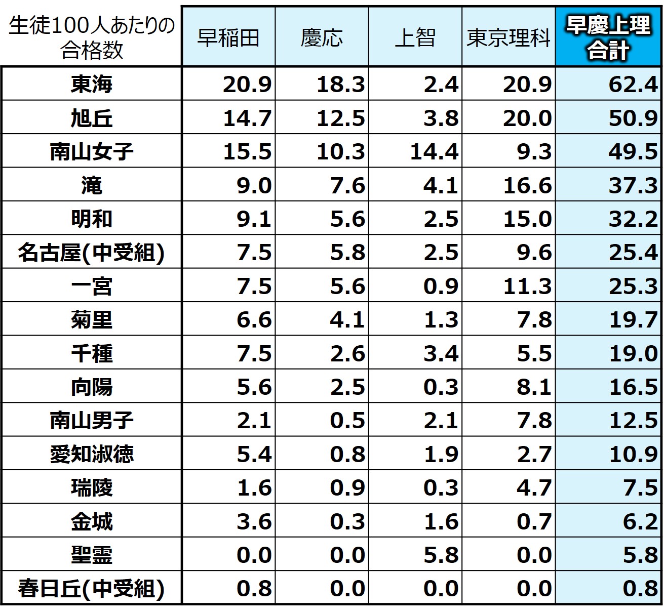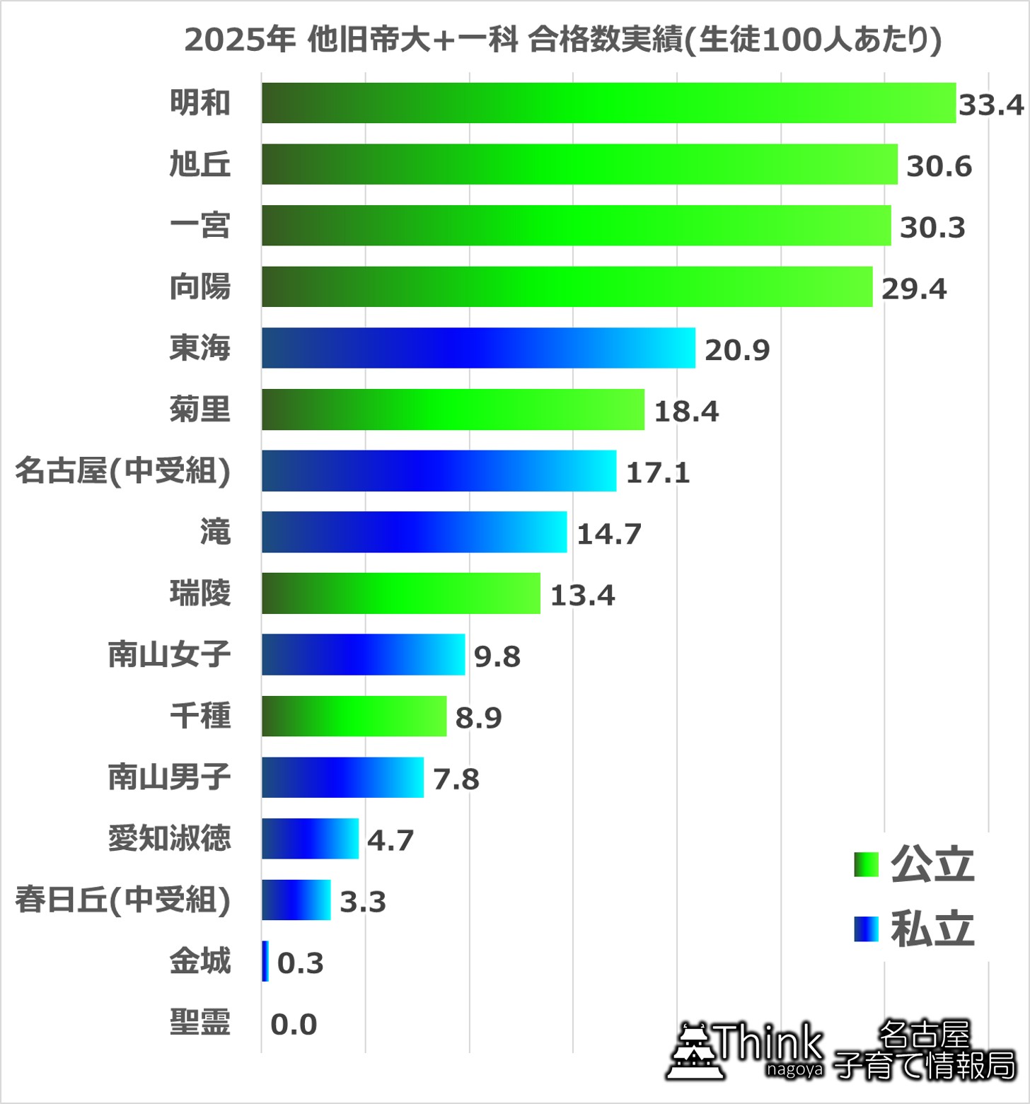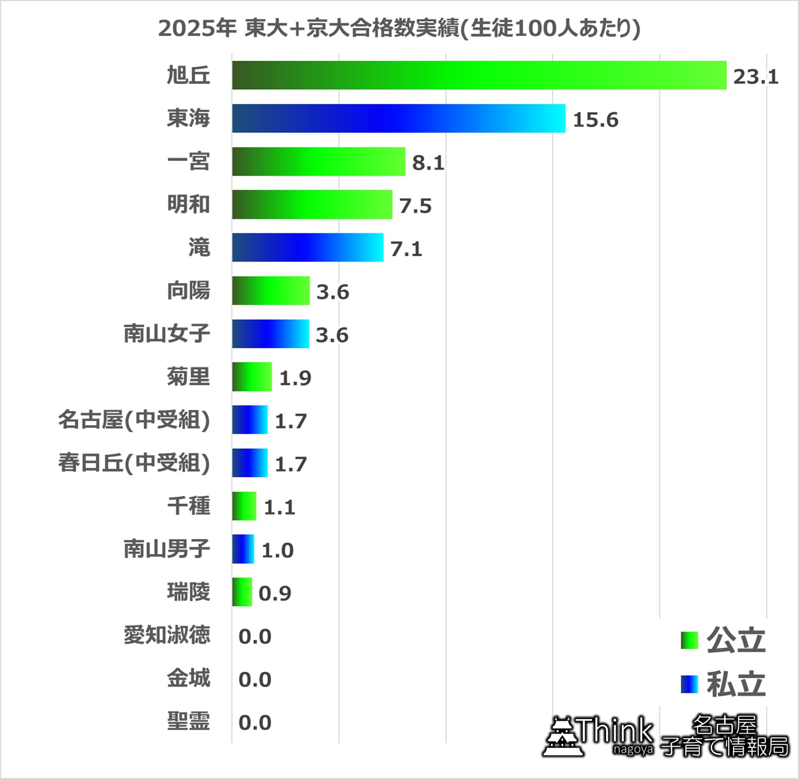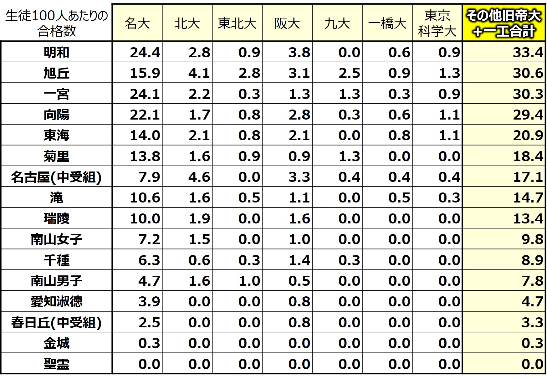ちなみに、名古屋中も3年前は生徒100人あたりの合格数が17.1人だったことを考えると、かなり数字を伸ばしたと言えます。