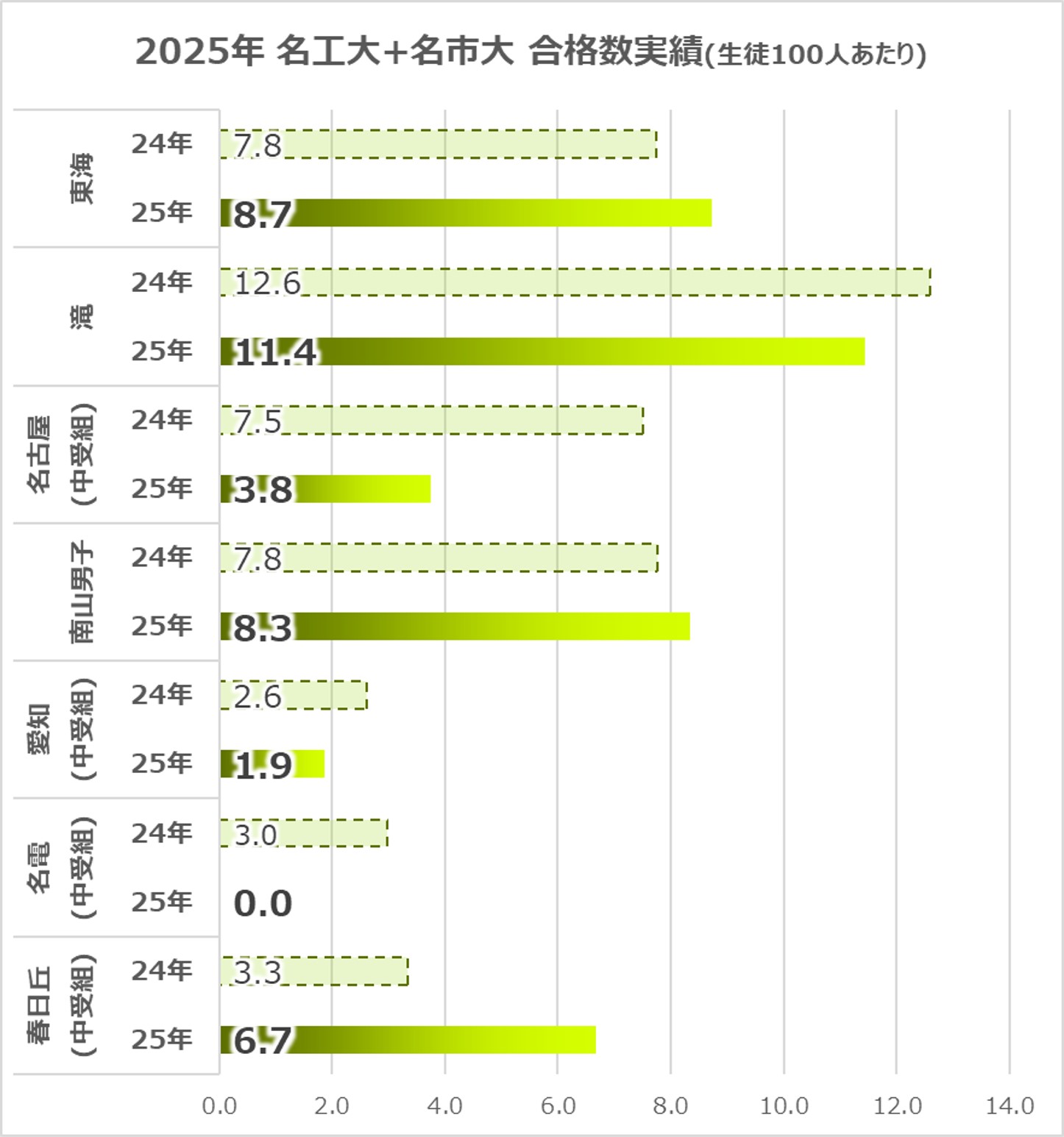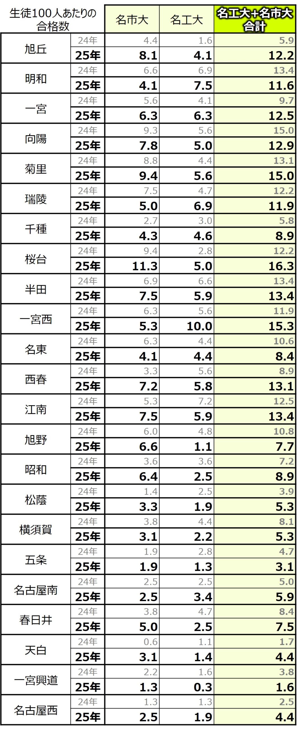 公立高校の名市大・名工大の合格実績は以下の通り。
