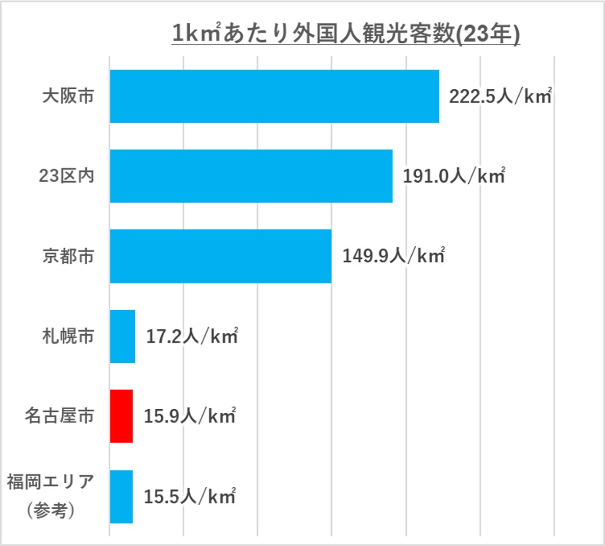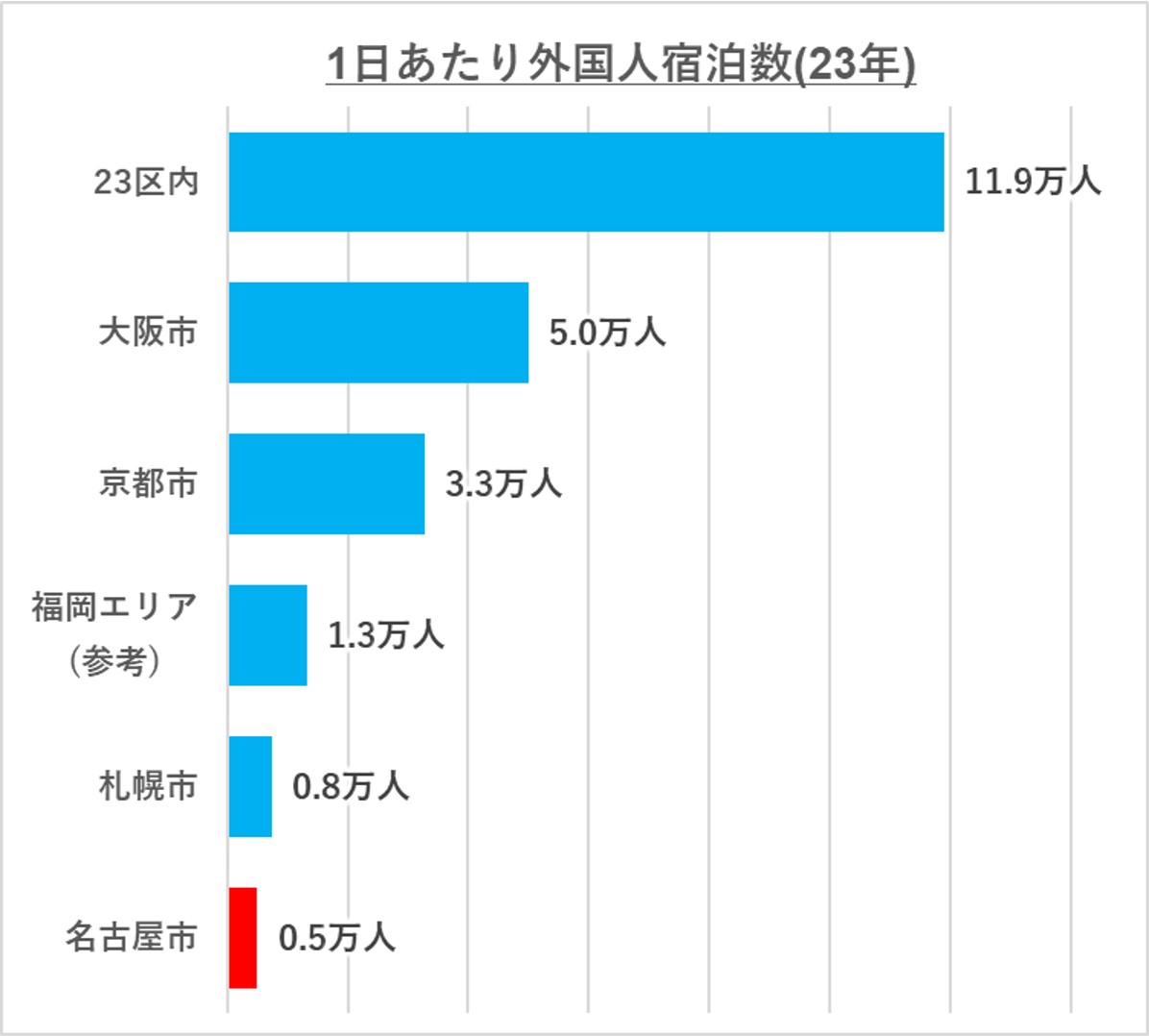 この数字に関しては少しイメージし辛いのですが、少なくともこの分析でも「名古屋市の外国人観光客はかなり少ない」というのは間違いないようです。