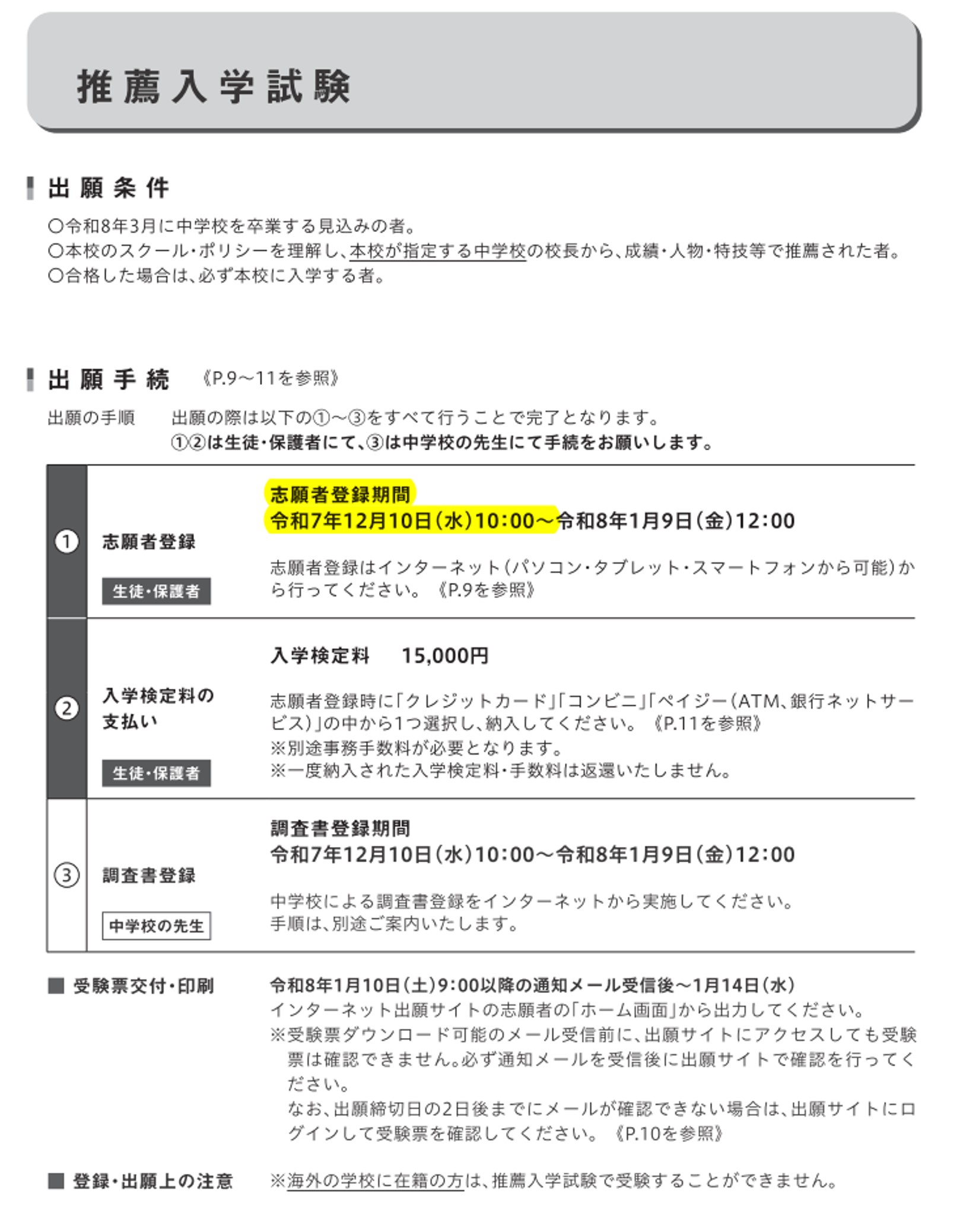 例えば、既に募集要項が発表されている名城高校は以下の通り2025年12月10日から登録がスタートすることになっていますね。