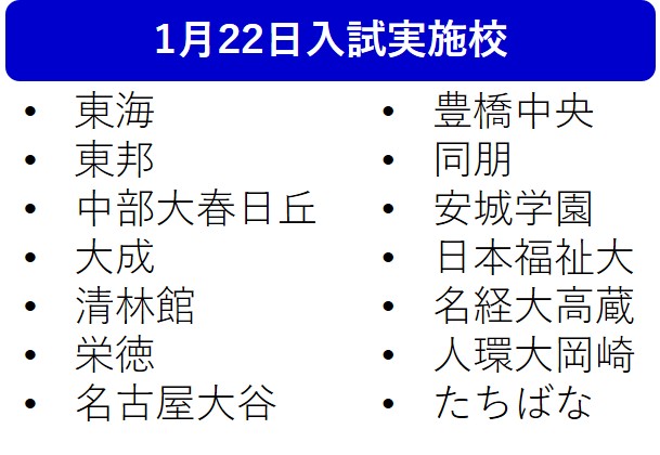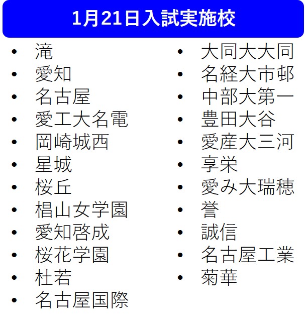 愛知県の私立高校入試はほとんどの学校が2026年1月21日・22日・23日の3日間に集中して実施しますが、今年は以下のような日程になっています。