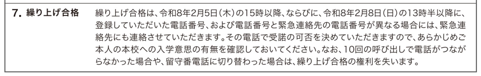 - 留守番電話につながった場合も繰り上げ合格の権利を失う
