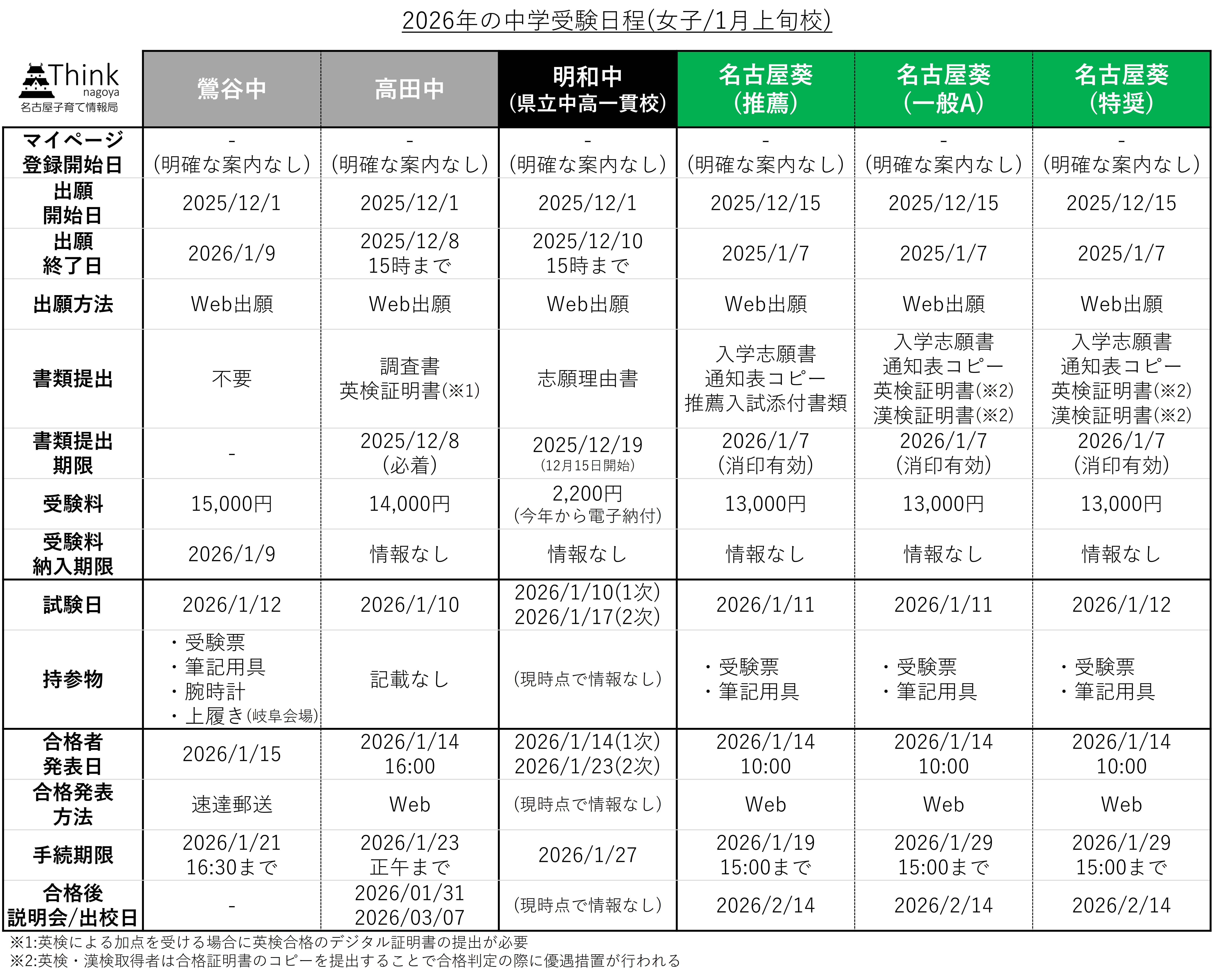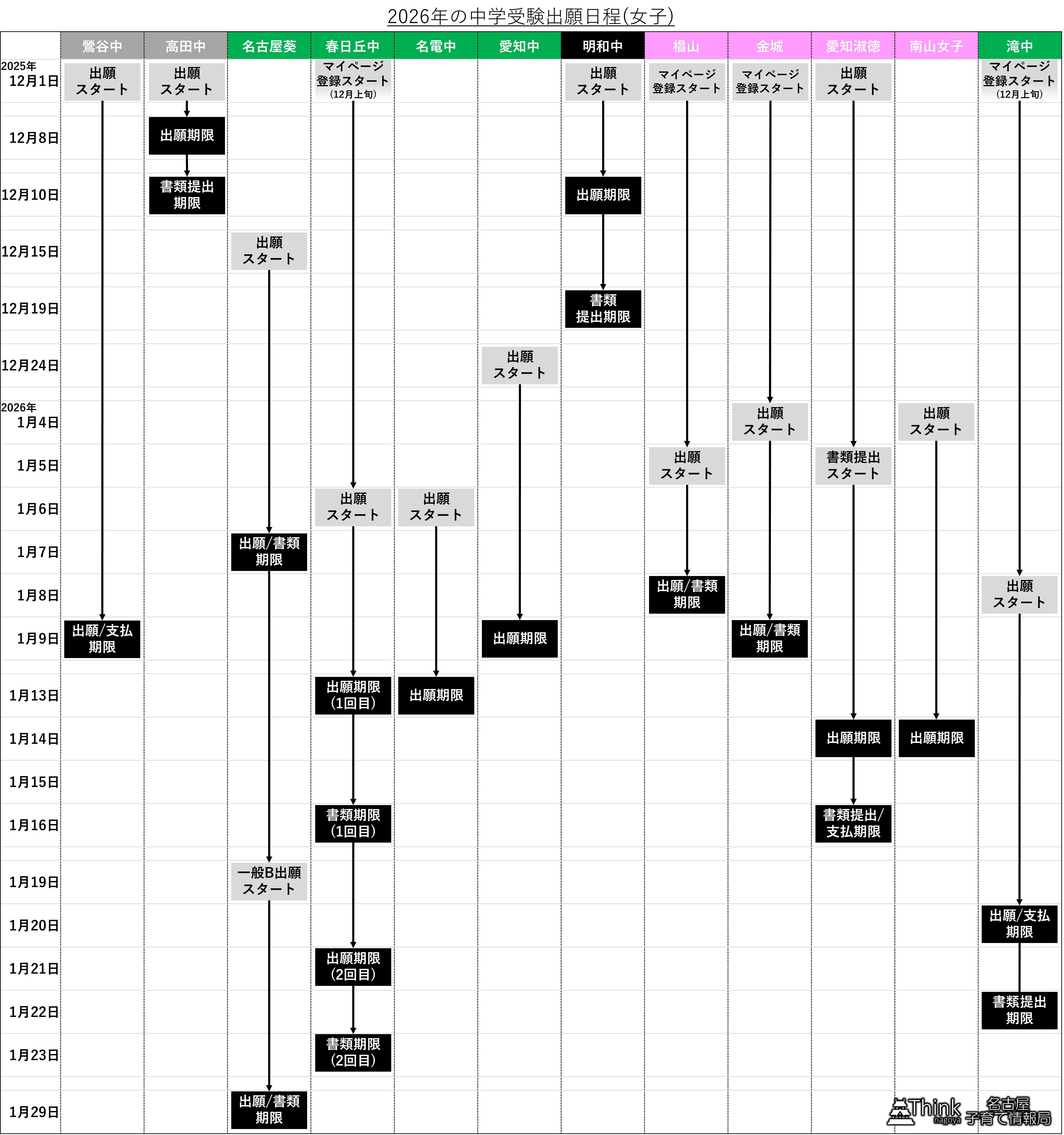 2026年 東海地区の中学受験スケジュールまとめ(女子編)