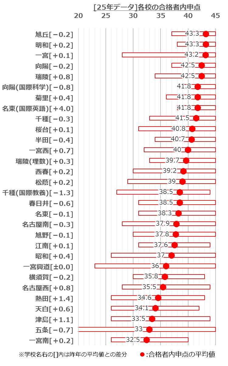 ※順番は合格者内申点平均値の上位順出典元:2025年愛知全県模試 追跡調査NEXT STAGEより